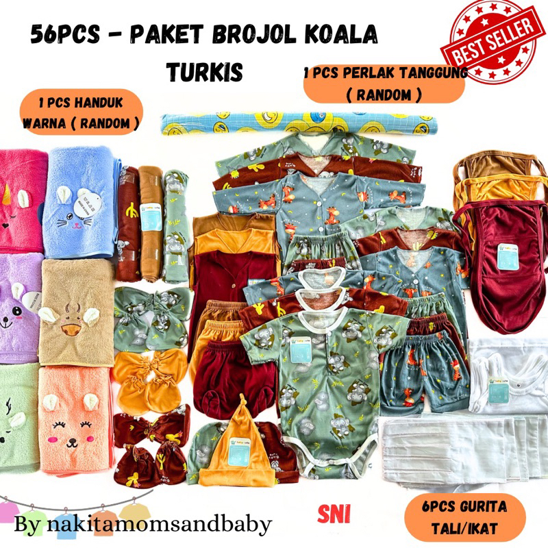 NAKITA 56pcs Paket Premium Printing Perlengkapan Baju Celana Bayi Singlet, Romper, Handuk, Perlak Bayi Baru Lahir 0-12 Bulan Combo Mix Koala Turkis SNI Sale 4.4