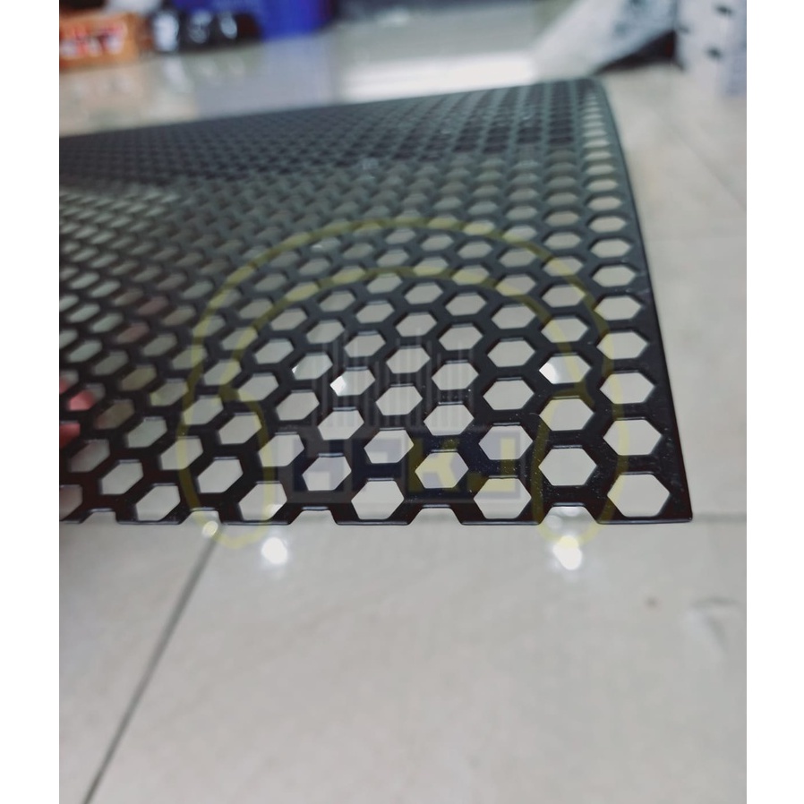 GRILL RAM BOX SPEAKER 118 x 53 TIPIS grill hitam segi enam 118x53cm