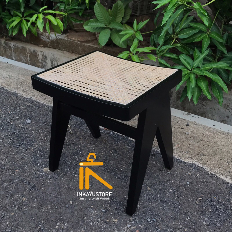 STOOL UNIK MINIMALIS KAYU JATI MIX ROTAN | STOOL MINIMALIS ANYAMAN ROTAN