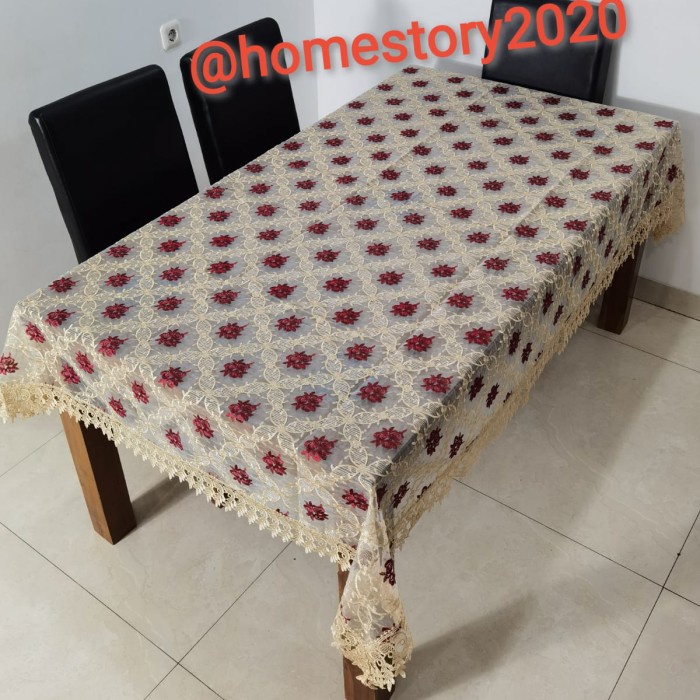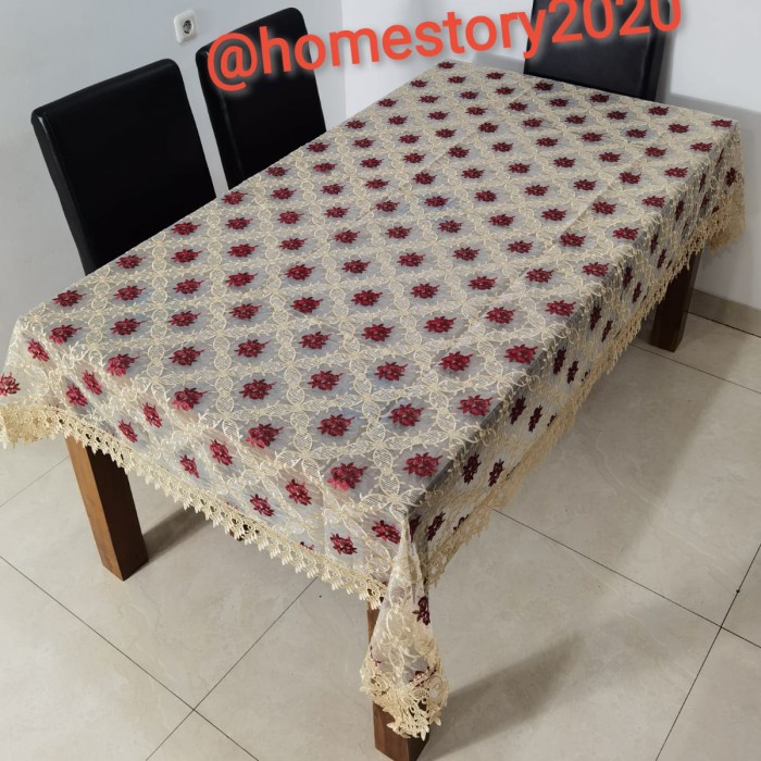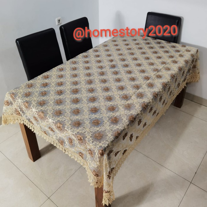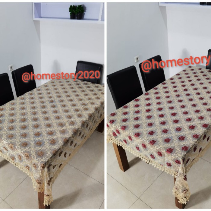 Taplak Meja Makan - Taplak Meja Makan Persegi Panjang Bahan Kain Katun Organdi 4 Kursi