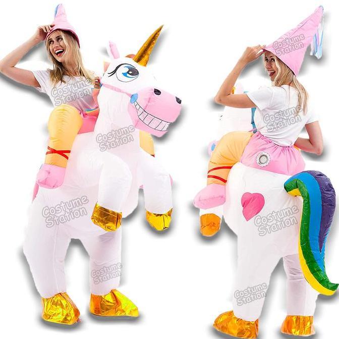 Kostum Unicorn Rainbow Back Ride / Costume Kuda Poni Pegasus dewasa