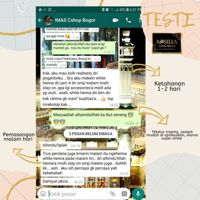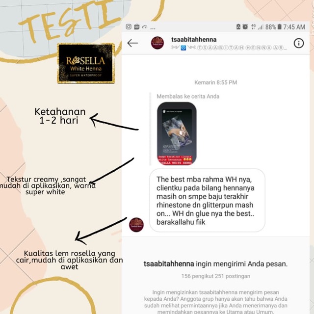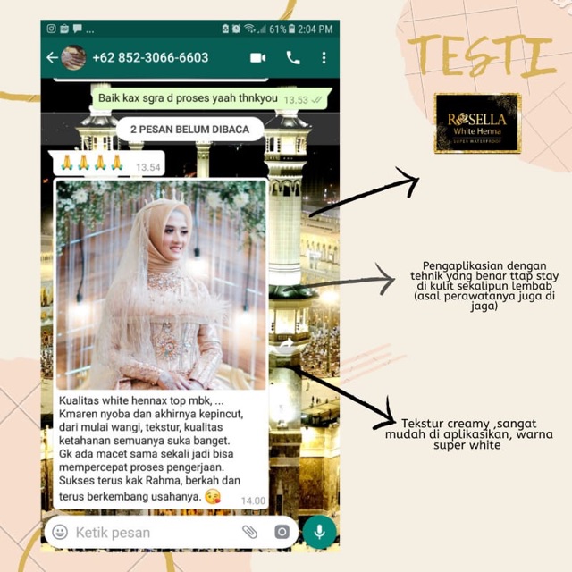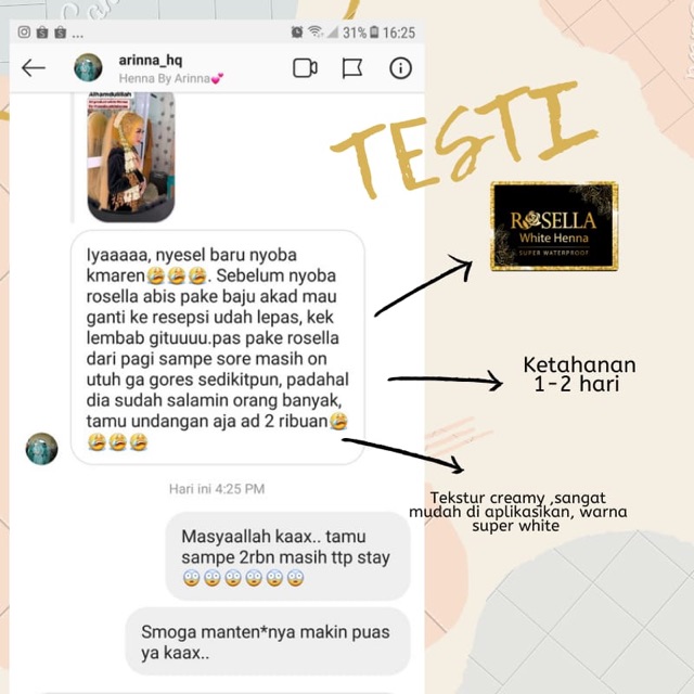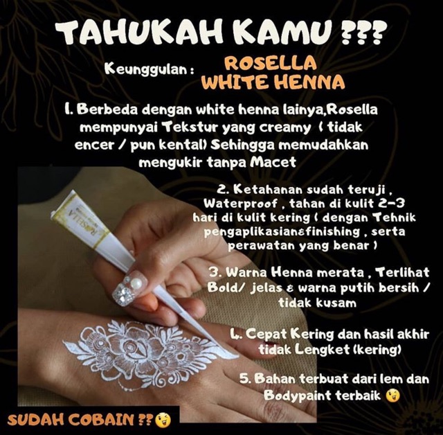 CREAMY DAN CAIR ROSELLA WHITE HENNA PREMIUM SUPER WATERPROOF (COD)