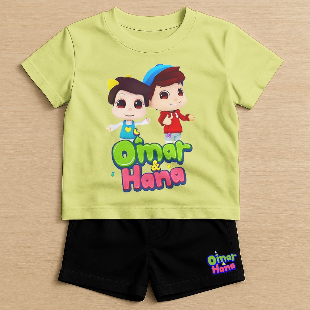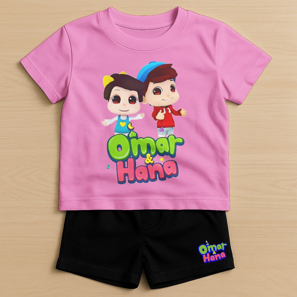 Setelan Anak Omar dan Hana Unisex 1-10 Tahun - Setelan Baju dan Celana Pendek Omar dan Hana Katun