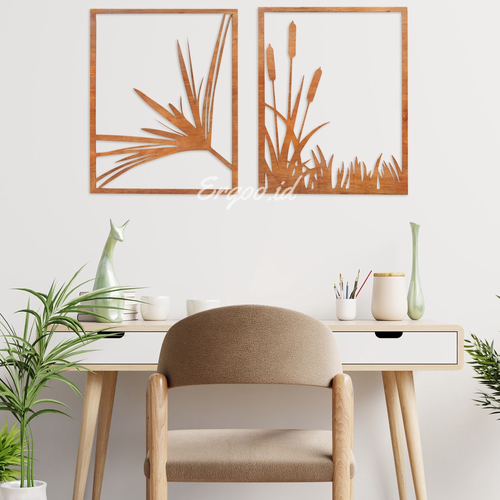 ERGOO Wall Decor Hiasan Dinding Kayu Motif Bunga