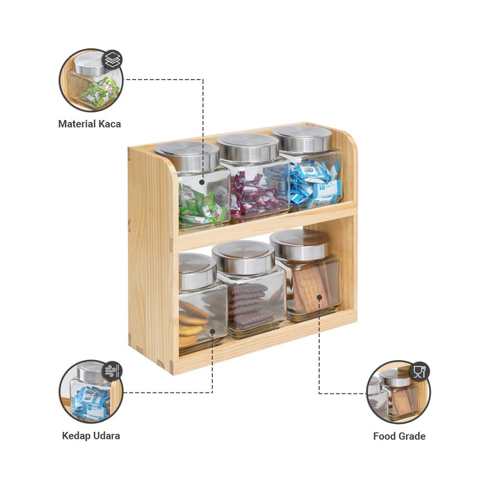 Informa 500 ml Set 6 pcs Caston Stoples Kaca Jar Tempat Simpan Snack Dan Permen Setoples Toples Serbaguna Perlengkapan Dapur Toples Tempat Bumbu Kontainer Snack Toples Kaca