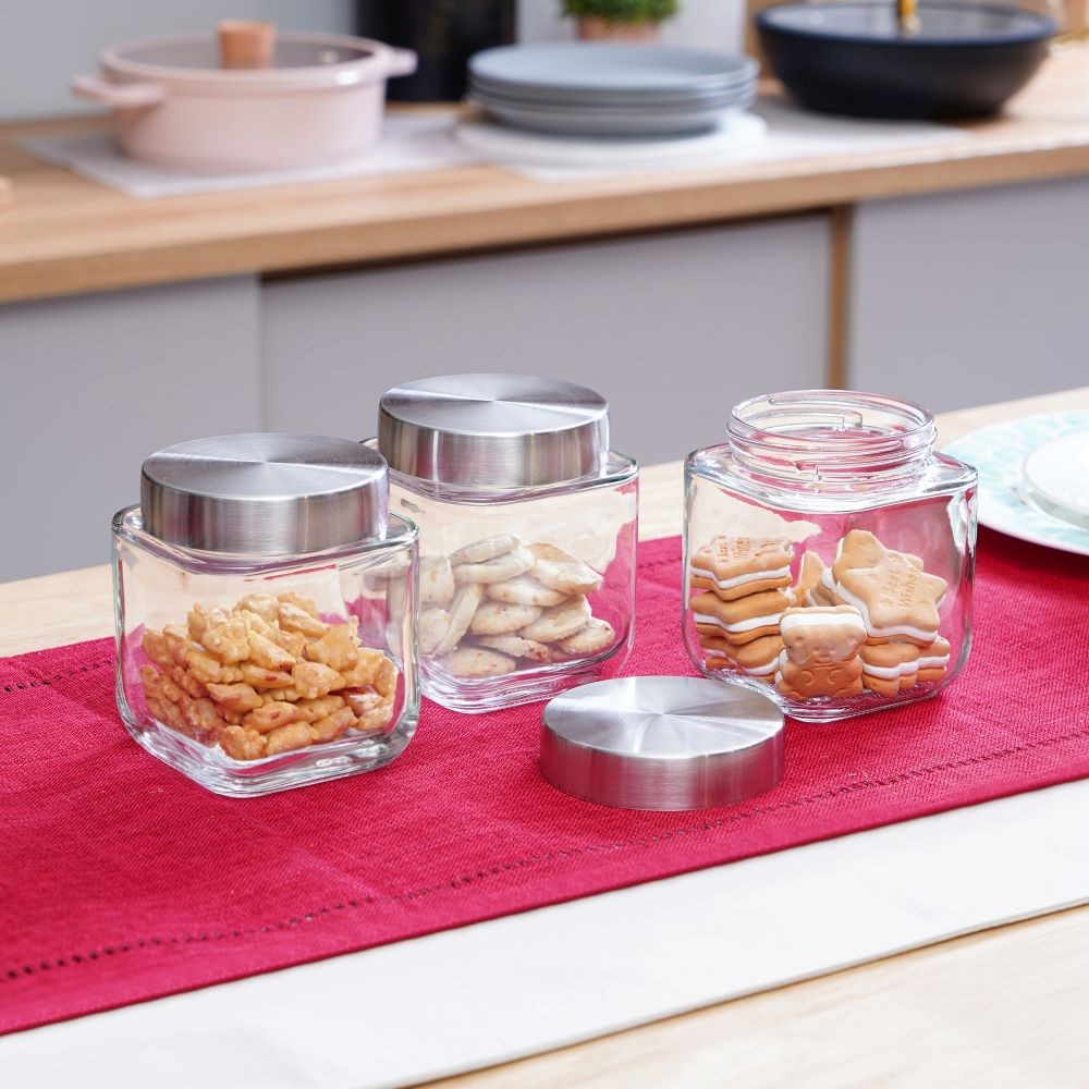 Informa Elemental Kitchen Set 3 pcs 550 ml Stoples Kaca Jar Tempat Simpan Snack Dan Permen Setoples Toples Serbaguna Perlengkapan Dapur Toples Tempat Bumbu Kontainer Makanan Tempat Snack
