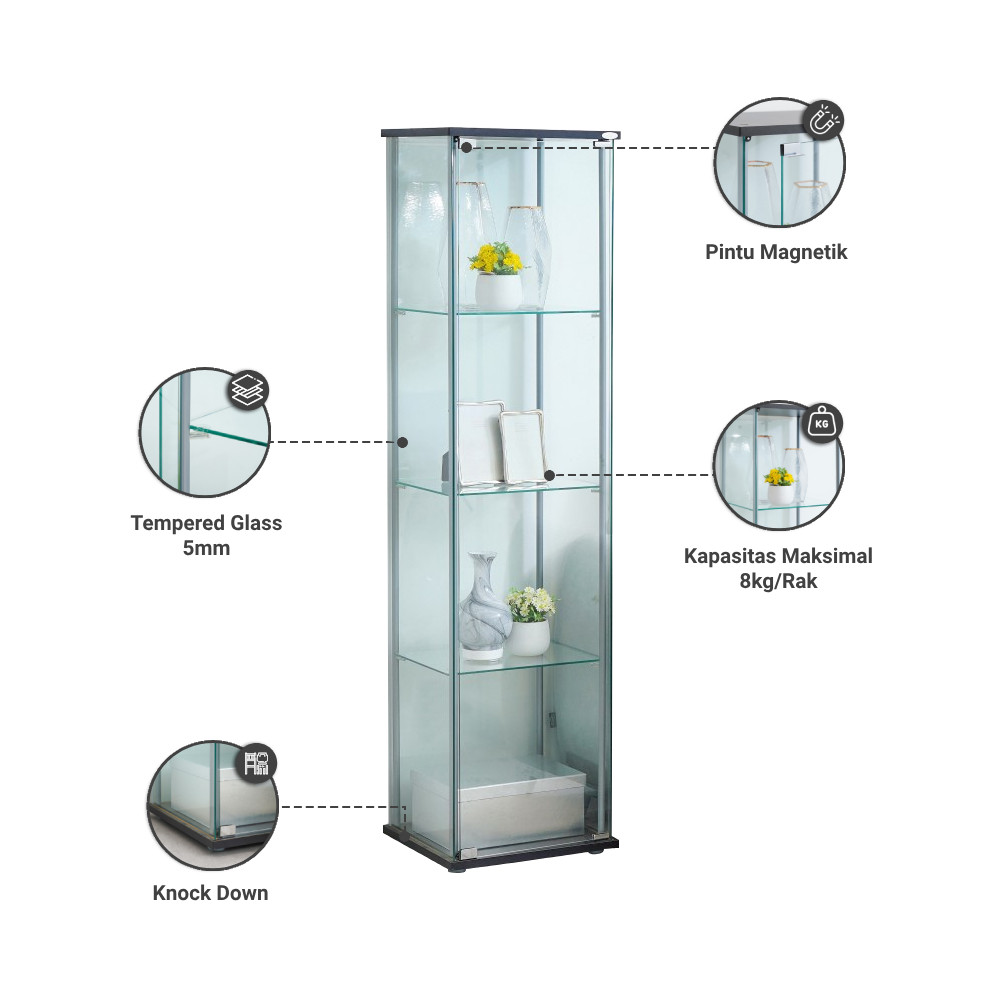 Informa Newvy Curio Lemari Pajang 4 Tingkat - Hitam Display Cabinet Kabinet Koleksi Pajangan Furniture Indoor Rak Tempat Hiasan Dekorasi Rumah Rak Pajangan Etalase Kaca Lemari Hias Tempat Koleksi Almari Pajangan