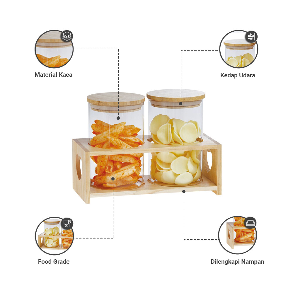 Informa 800 ml Set 2 pcs Coco Stoples Kaca Dengan Nampan Jar Tempat Simpan Snack Dan Permen Setoples Toples Serbaguna Perlengkapan Dapur Tempat Bumbu Dapur Toples Kaca Wadah Snack Tempat Camilan