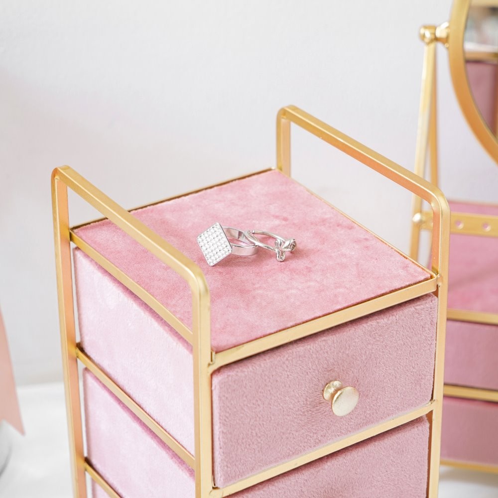 Informa Kotak Perhiasan 3 Laci - Pink Wadah Simpan Aksesoris Tempat Anting Kalung Cincin Organizer Aksesoris Serbaguna Desk Storage Box Organizer Meja Organizer Aksesori Tempat Penyimpanan Laci Kecil Meja Rias Kamar Tidur