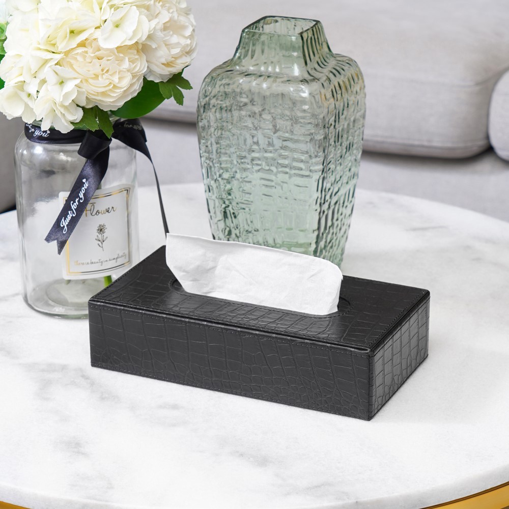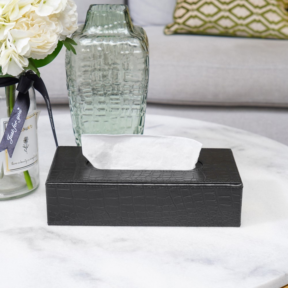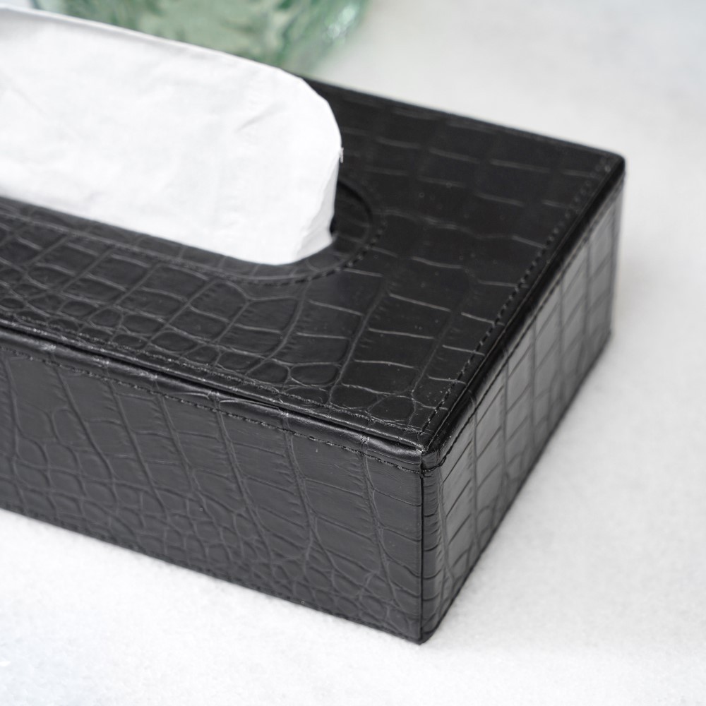 Informa Kotak Tisu Kulit Croco 3119S - Hitam Tissue Box Holder Aesthetic Wadah Penyimpanan Tisyu Perlengkapan Rumah Tangga Wadah Tissue Tempat Penyimpanan Dekorasi Meja Aksesori Ruangan