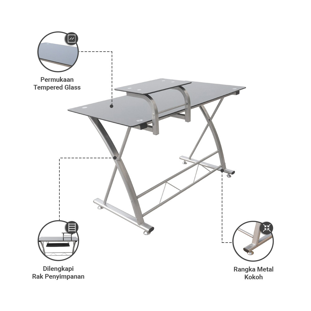 Informa Hazel Meja Kantor - Hitam Office Table Furnitur Kantor Belajar Serbaguna Meja Belajar Meja Rak Meja Monitor Tempat Kerja Perabot Kantor