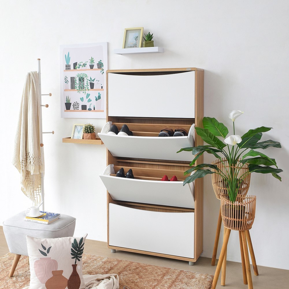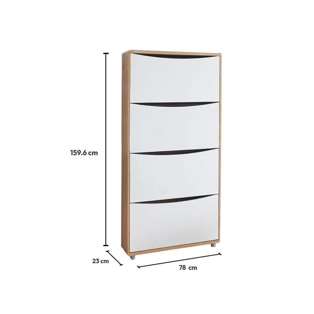 Informa Mile Kabinet Sepatu 4 Tingkat - Putih/Cokelat Oak Organizer Sandal Dan Sepatu Rak Lemari Serbaguna Tempat Penyimpanan Sendal Tempat Rak Sepatu Minimalis Lemari Sepatu Kabinet