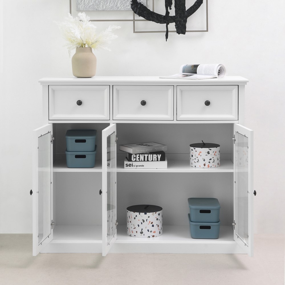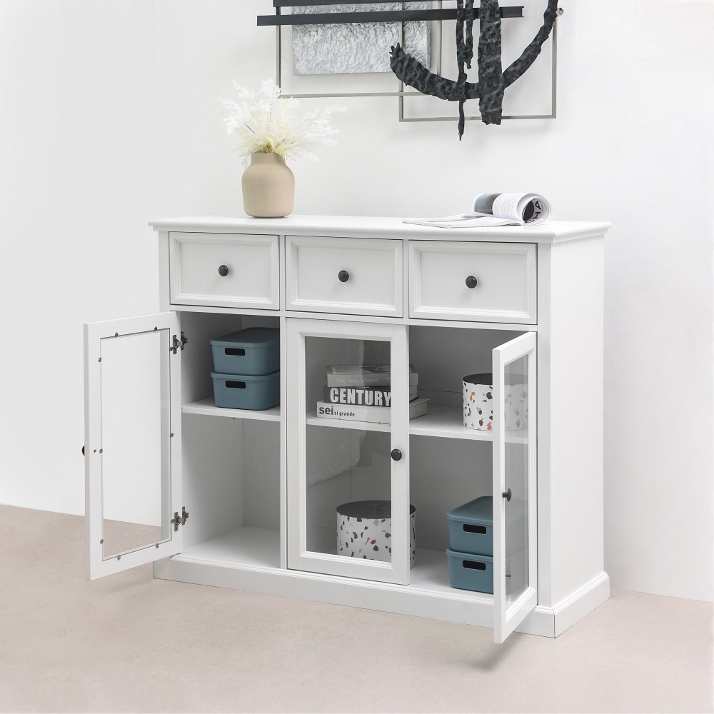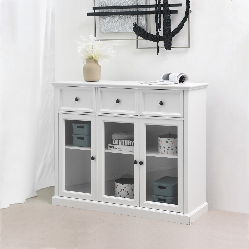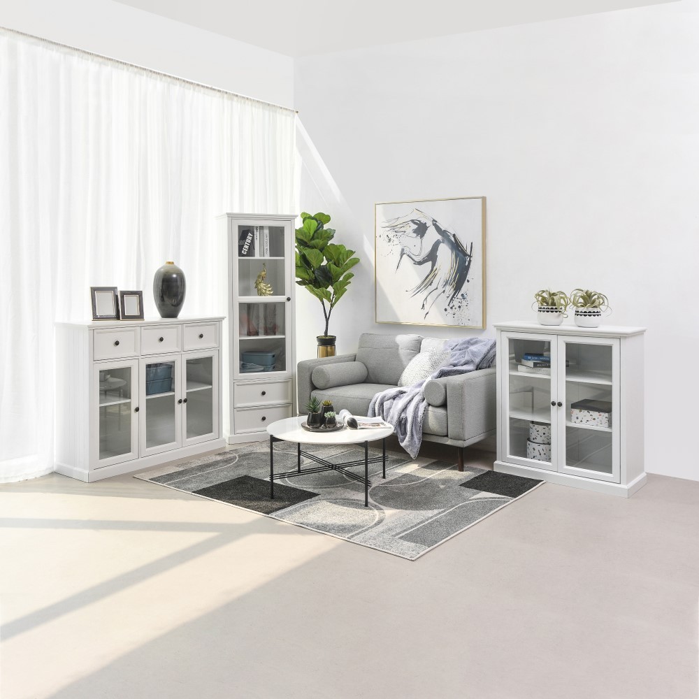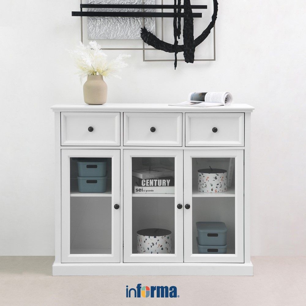 Informa Naco Kabinet 3 Pintu Kaca Dengan 3 Laci - Putih Lemari Kabinet Serbaguna Cabinet Penyimpanan Indoor Furniture Rumah