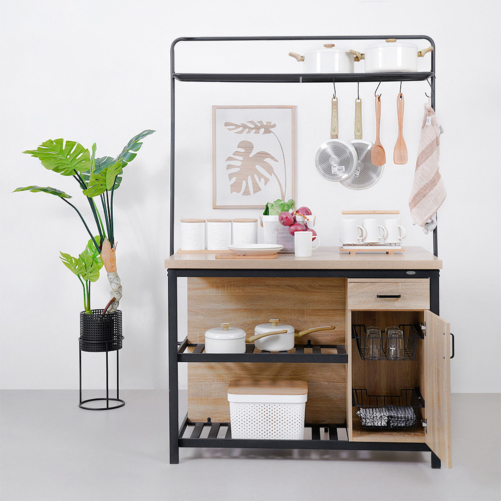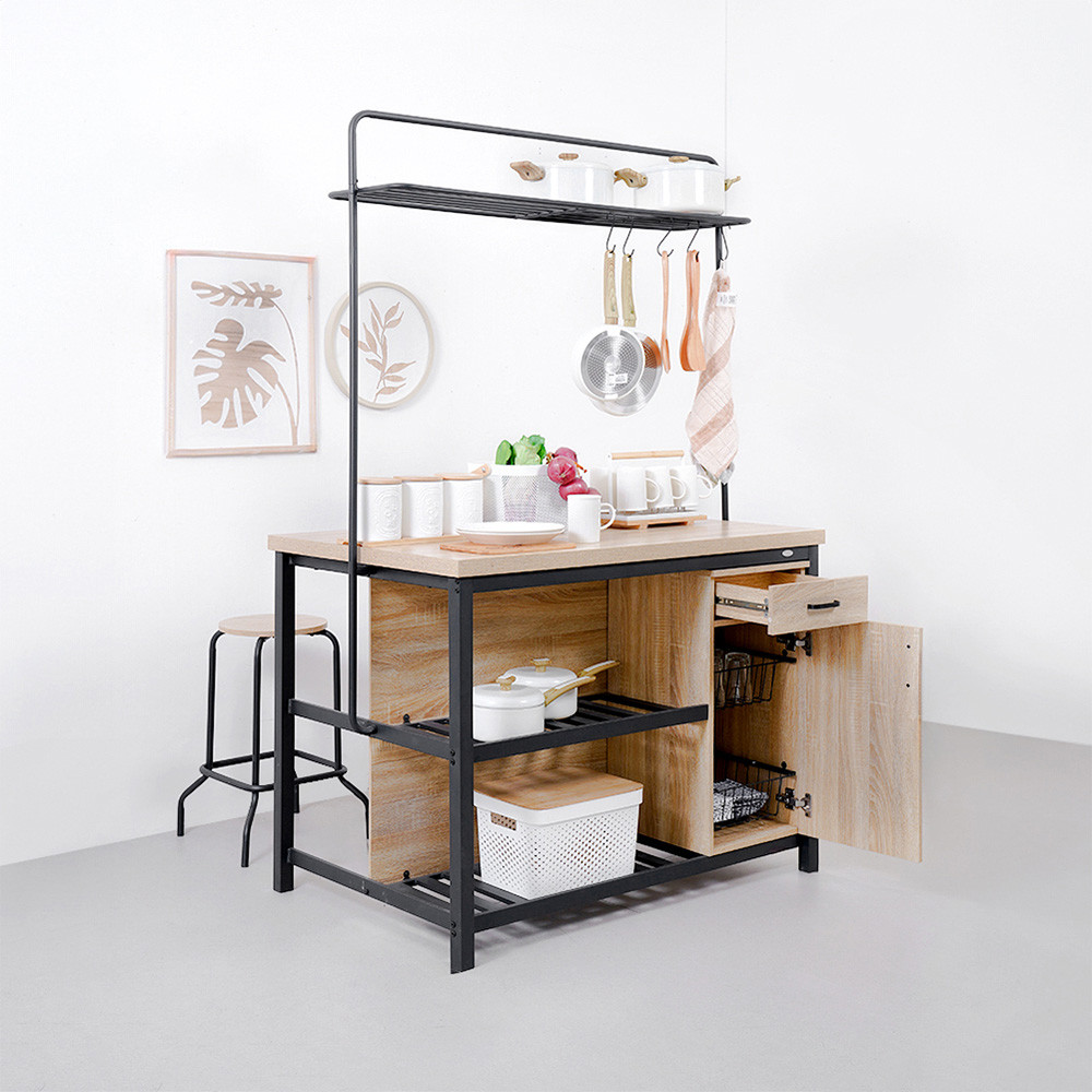 Informa Zea Set Meja Dapur Dengan 2 Bangku - Cokelat Oak Kitchen Working Table Meja Masak Serbaguna Cooking Desk Furniture Dapur