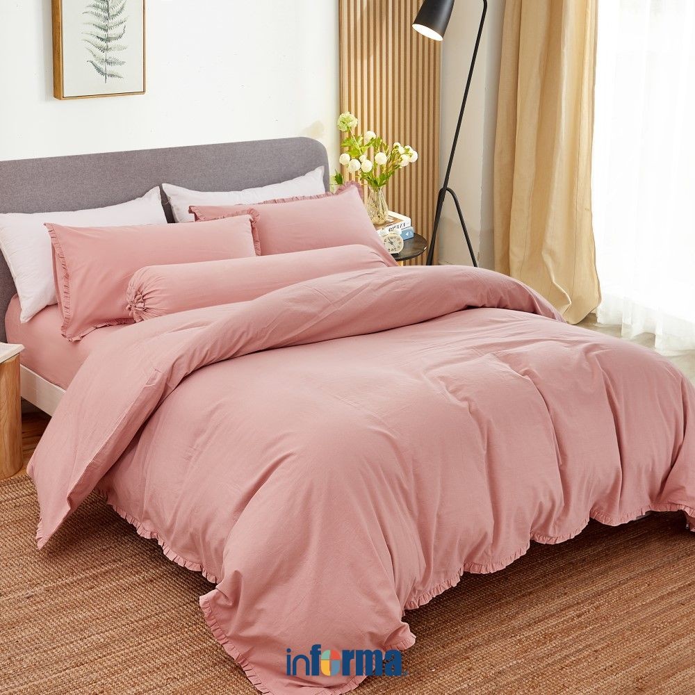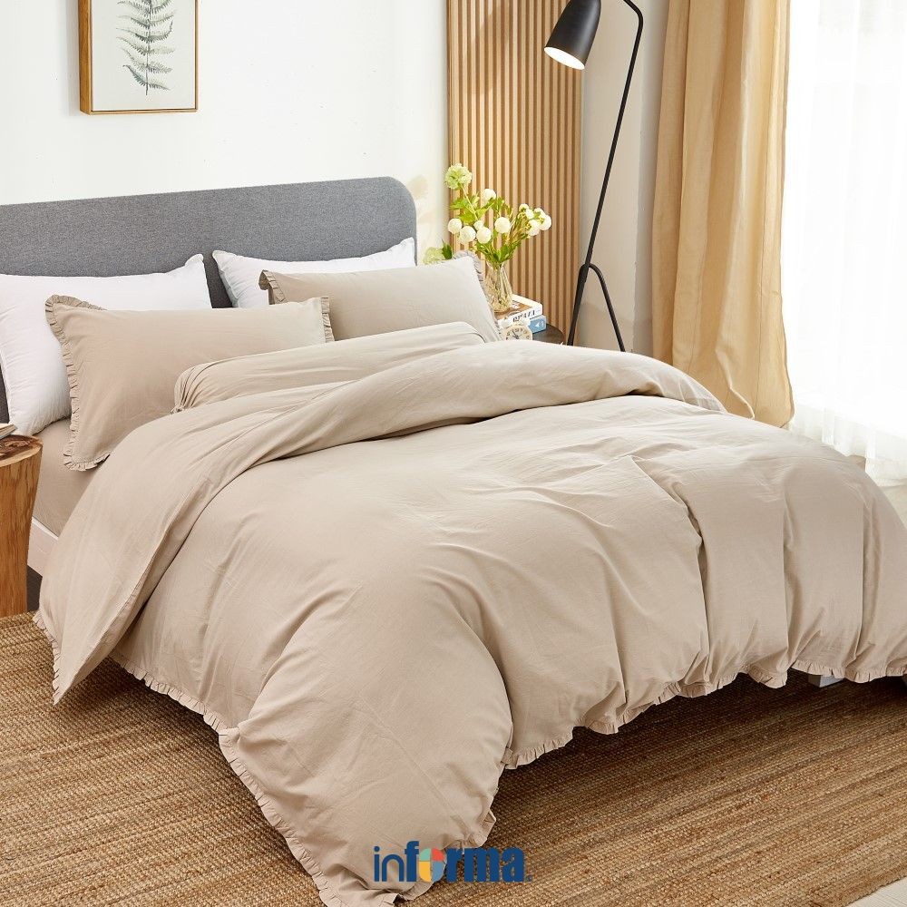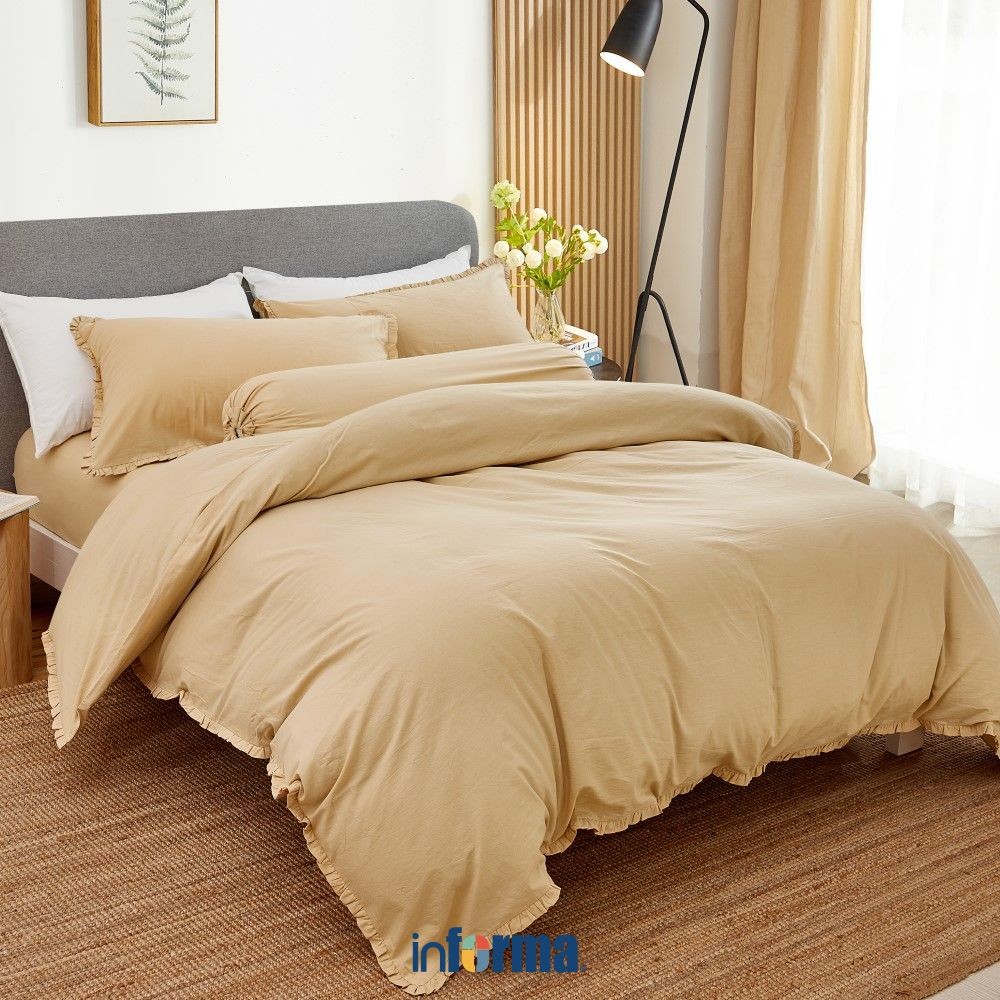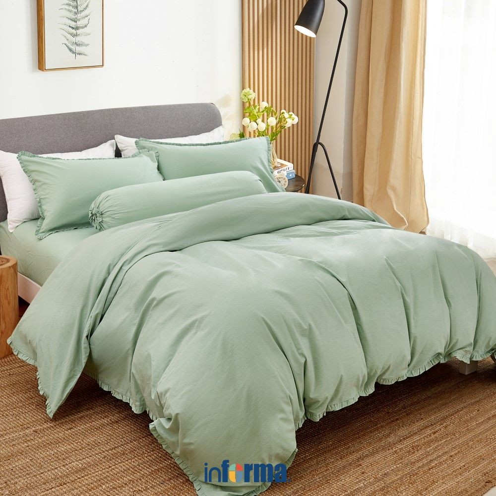 Informa Set Seprai Katun Ruffle Hijau Pink Taupe Sand King Queen Single 200X200 180X200 160X200 120X200 Sprei Seprei Sheet Set Bed Sheet