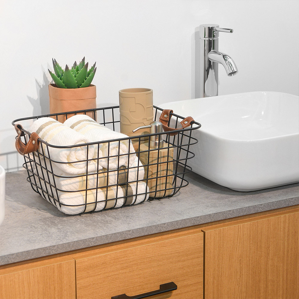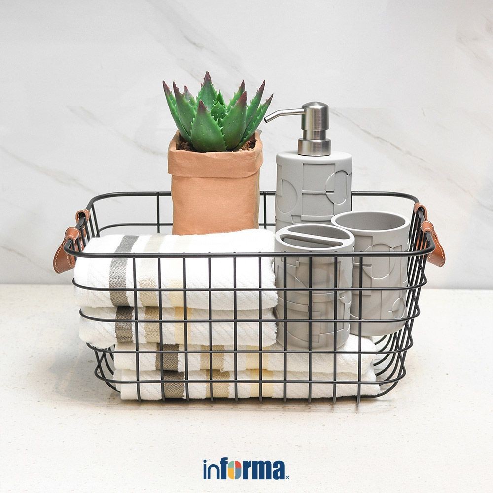 Informa 30x24x12 cm Keranjang Penyimpanan Dengan Gagang Kulit Storage Basket Kotak Penyimpanan Serbaguna Bin Organizer Tempat Simpan Barang Wadah Serbaguna Organizer Ruangan Tempat Handuk Rak Peralatan Mandi
