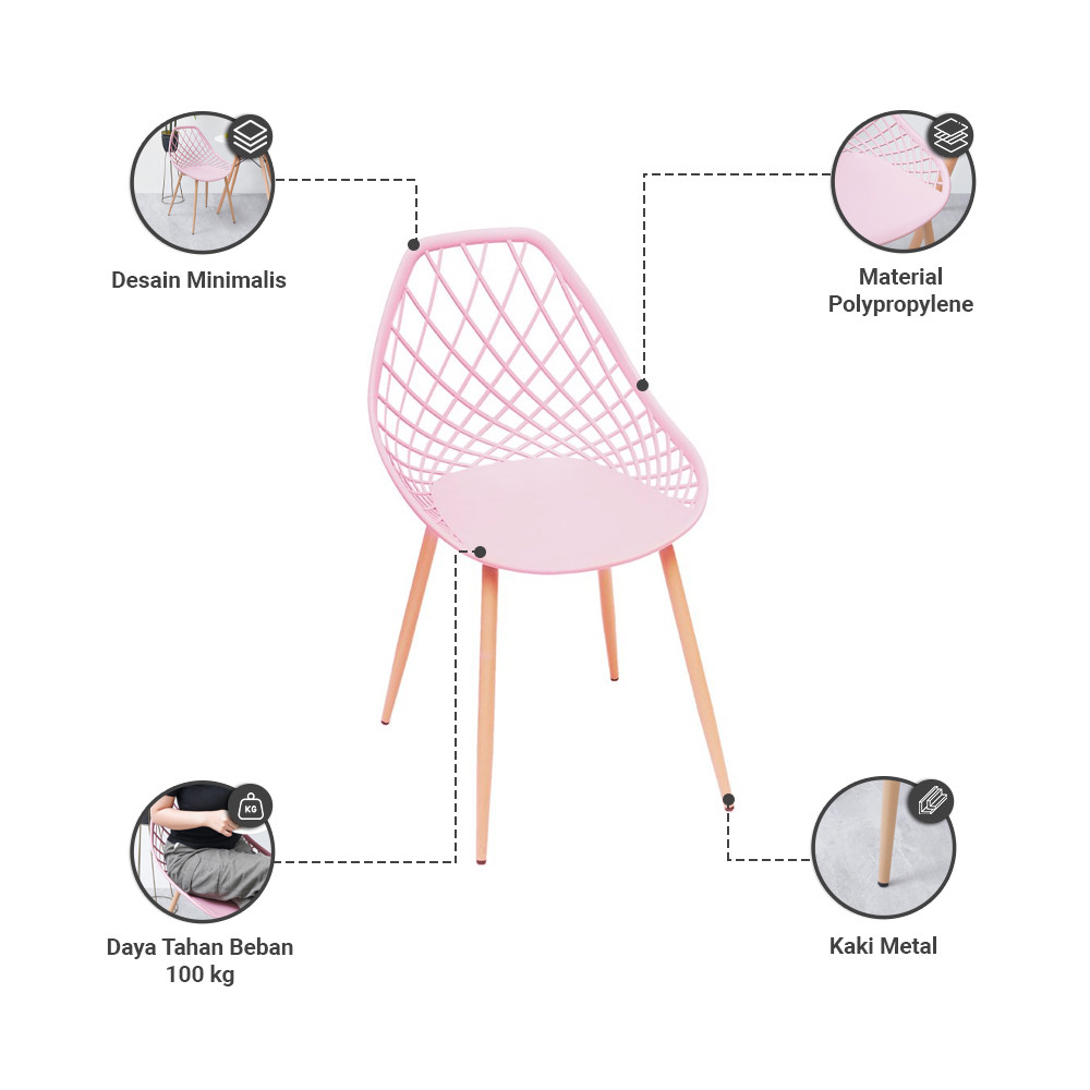 Informa Harmon Kursi - Pink Multipurpose Chair Kursi Makan Cafe Restoran Serbaguna Balcony Chair Furnitur Rumah Bangku Kursi Santai Kursi Belajar