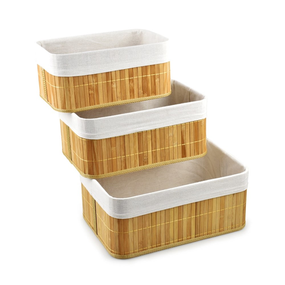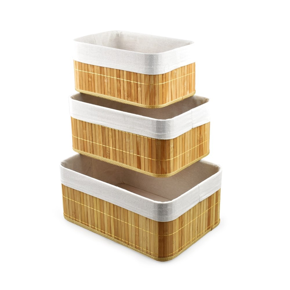 Informa 35x25x15 cm Set 3 pcs Keranjang Penyimpanan Bambu Storage Basket Kotak Penyimpanan Serbaguna Bin Organizer Tempat Simpan Barang Wadah Serbaguna Organizer Laci Tempat Buku Kotak Tekstil Rak Bumbu