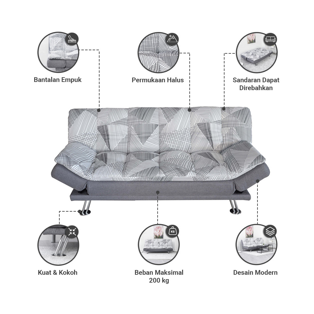 Informa Neo Snowville Sofa Bed Fabric - Abu-Abu Tempat Duduk Multifungsi Sofa Tidur 2In1 Kursi Santai Serbaguna Furniture Rumah