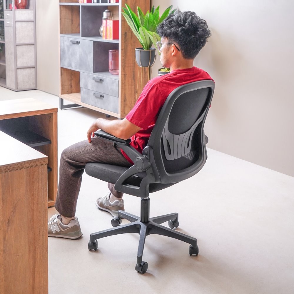Informa Ken Kursi Kantor Sandaran Rendah - Hitam Tempat Duduk Kerja Dengan Roda Office Chair Kursi Mesh Staff Karyawan Furniture Indoor Kantor