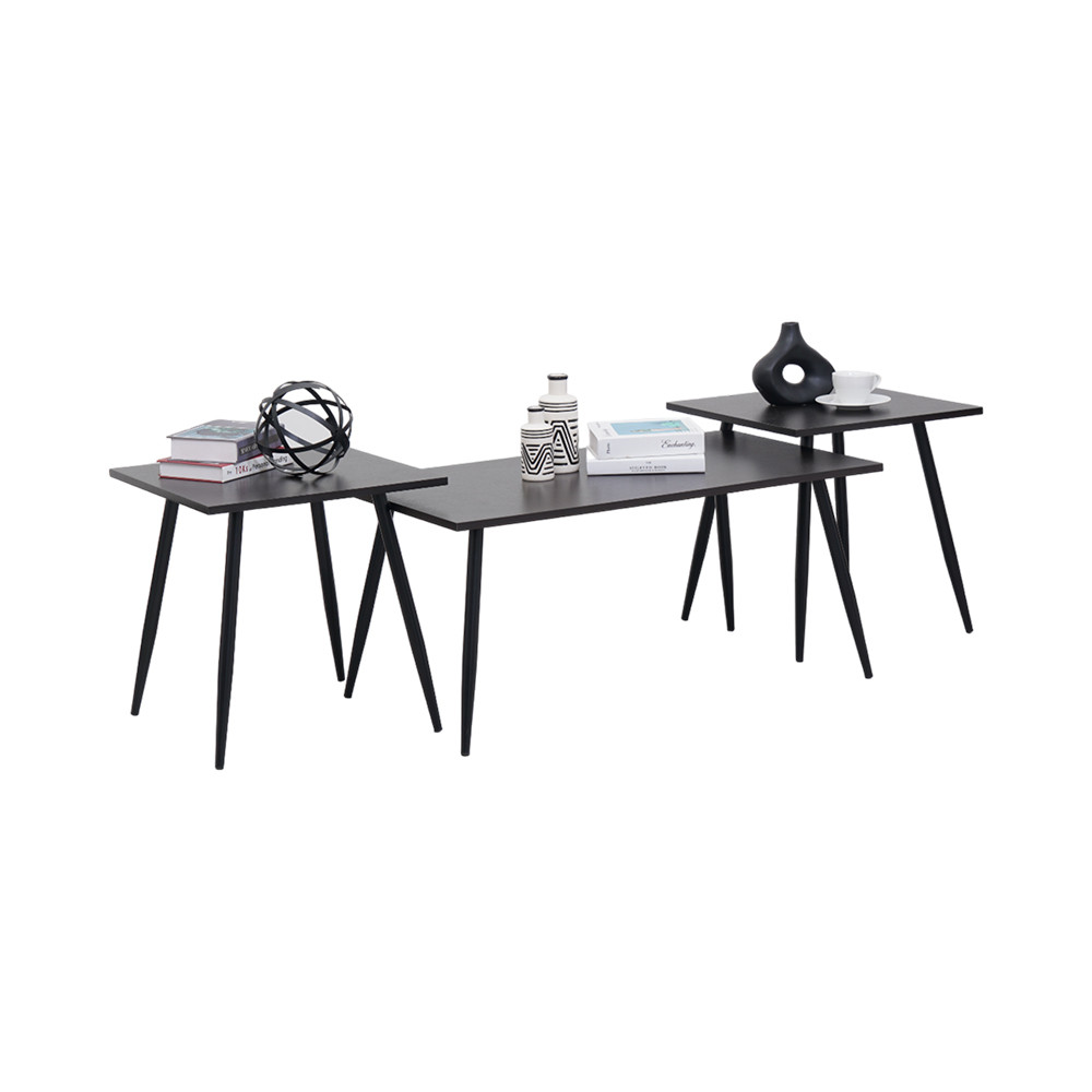 Informa Marley Set 3pcs Meja Tamu & Meja Sisi - Hitam Set Coffee Table And End Table Serbaguna Furniture Rumah Aesthetic Meja Sofa Meja Ngopi Meja Kecil Meja Baca Meja Sudut Ruangan