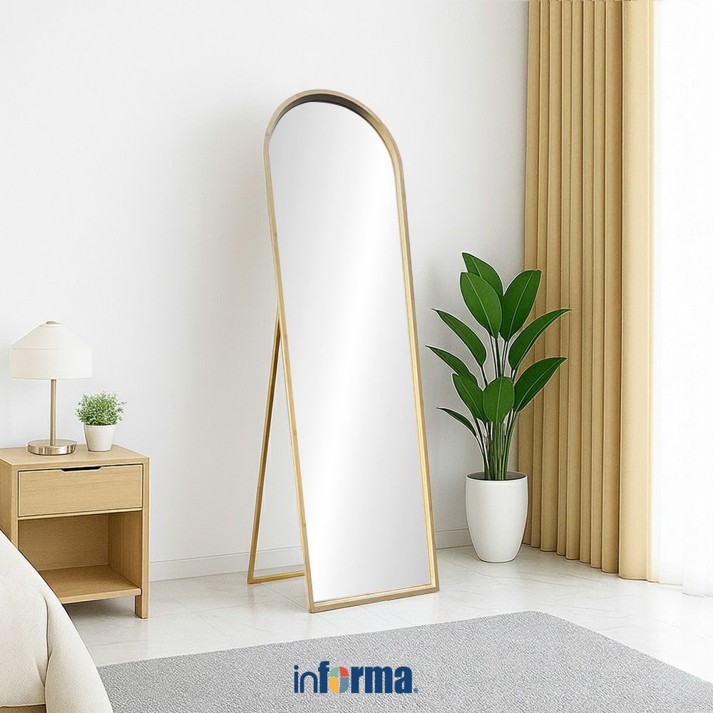 Informa 50X180 cm Arch Cermin Lantai Wooden Standing Floor Mirror Kaca Berdiri Serbaguna Dengan Sandaran Furniture Indoor Rumah