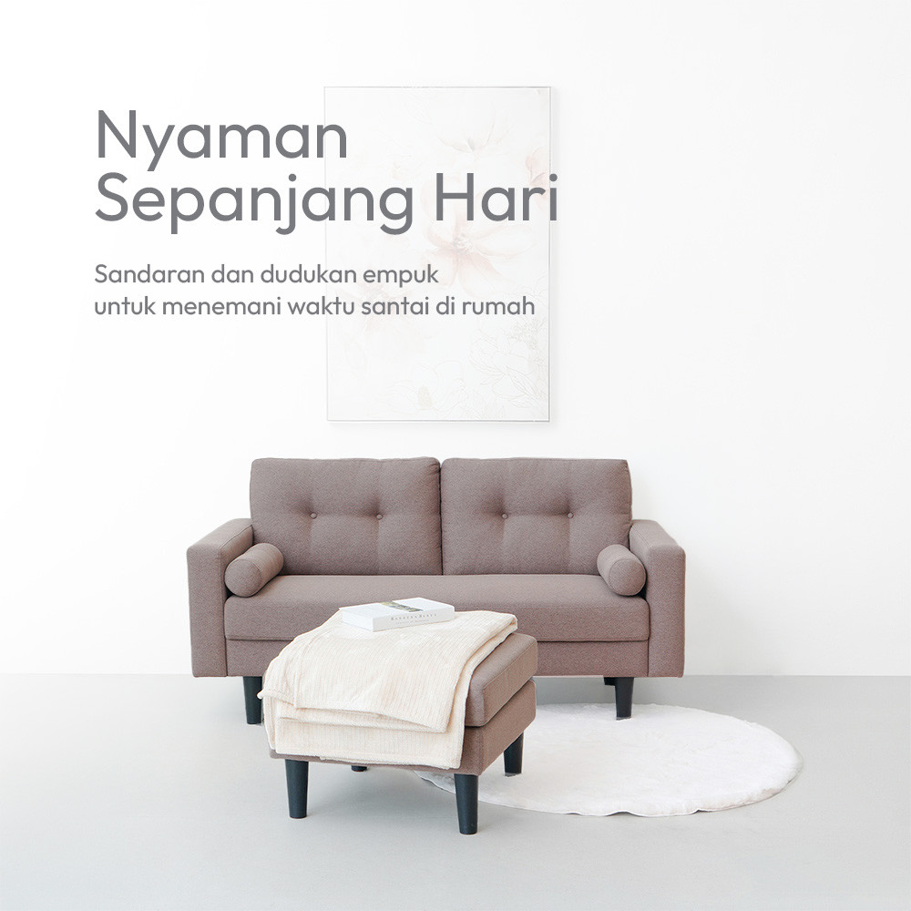 Informa Pluto Set Sofa Fabric 2 Seater Dengan Bangku - Cokelat Empuk Sofa Ruang Tamu Furniture Indoor Rumah Couch Kursi Santai Kursi Tamu Bangku Kaki Kursi Minimalis