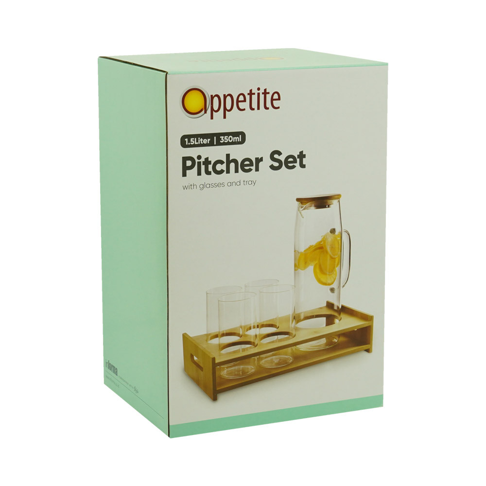 Informa Appetite Set 6 Pcs Teko & Gelas Dengan Nampan Set Water Jug With Glass And Tray Pitcher Wadah Penyimpanan Air Peralatan Minum
