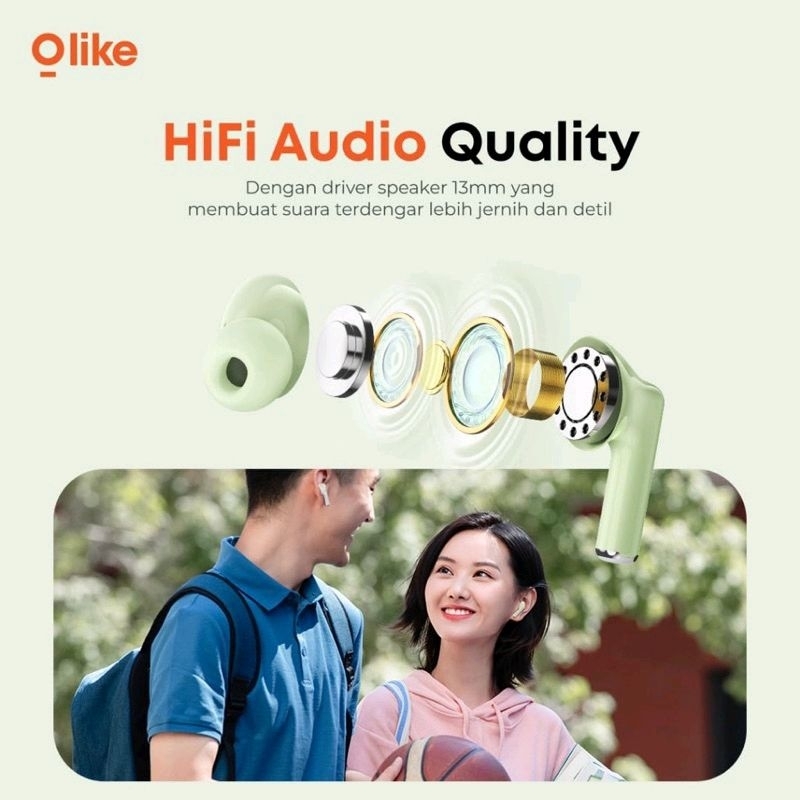 Olike TWS T112 Headset True Wireless Bluetooth 5.3 Earphone Half Ear 13mm Earbuds Garansi Original