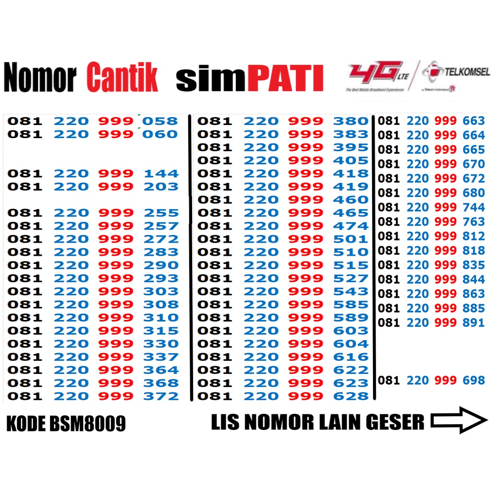 NOMOR CANTIK TELKOMSEL simPATI Cantik Murah Bisa Cod Banyak Pilihan Angka cantik dan hoki 8,88,888,89,99,00,1230Kartu Perdana Nomor Cantik Simpati Murah Rapih 4G LTE - Nomor Cantik Telkomsel, Nomer Cantik Bebas Pilih Bisa COD