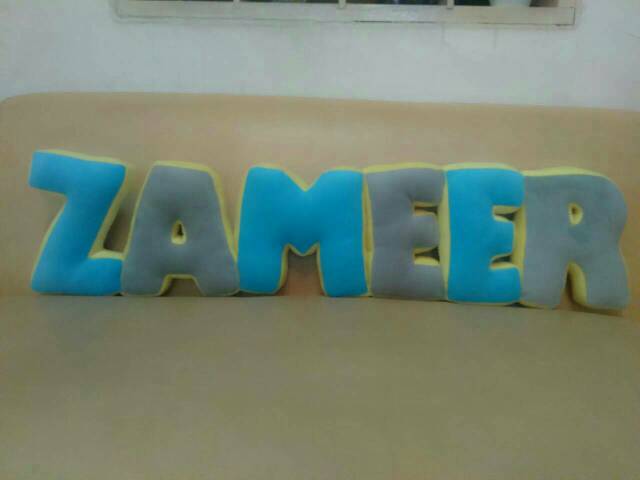 bantal nama huruf kado hadiah unik boneka kamar plushie