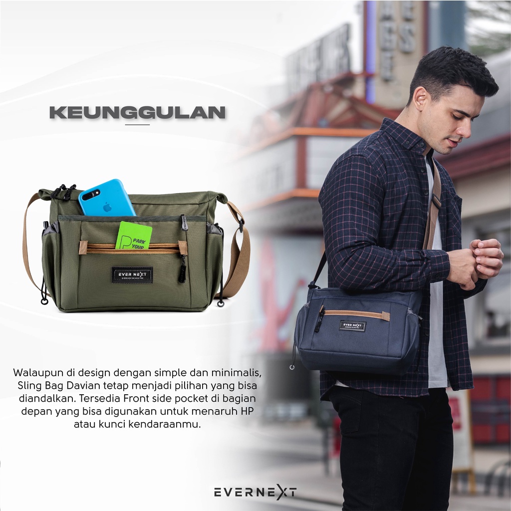 Evernext - Tas Selempang Pria Messenger Bag Pria Tas Bahu Pria Sling Bag Davian Pria