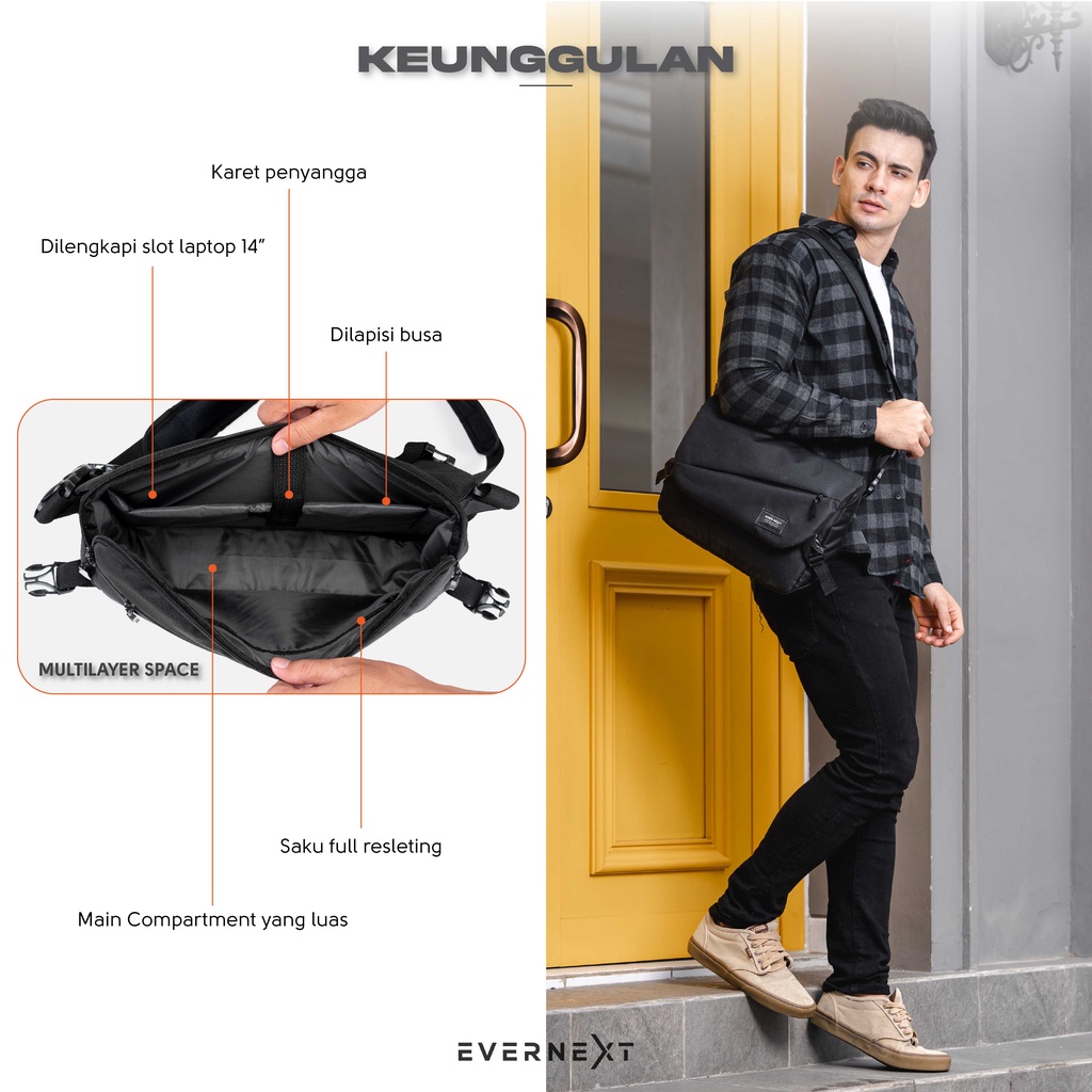 Evernext - Messenger Bag Pria Tas Selempang Laptop 13" Pria Sling Bag Pria Tas Kantor Kerja Pria