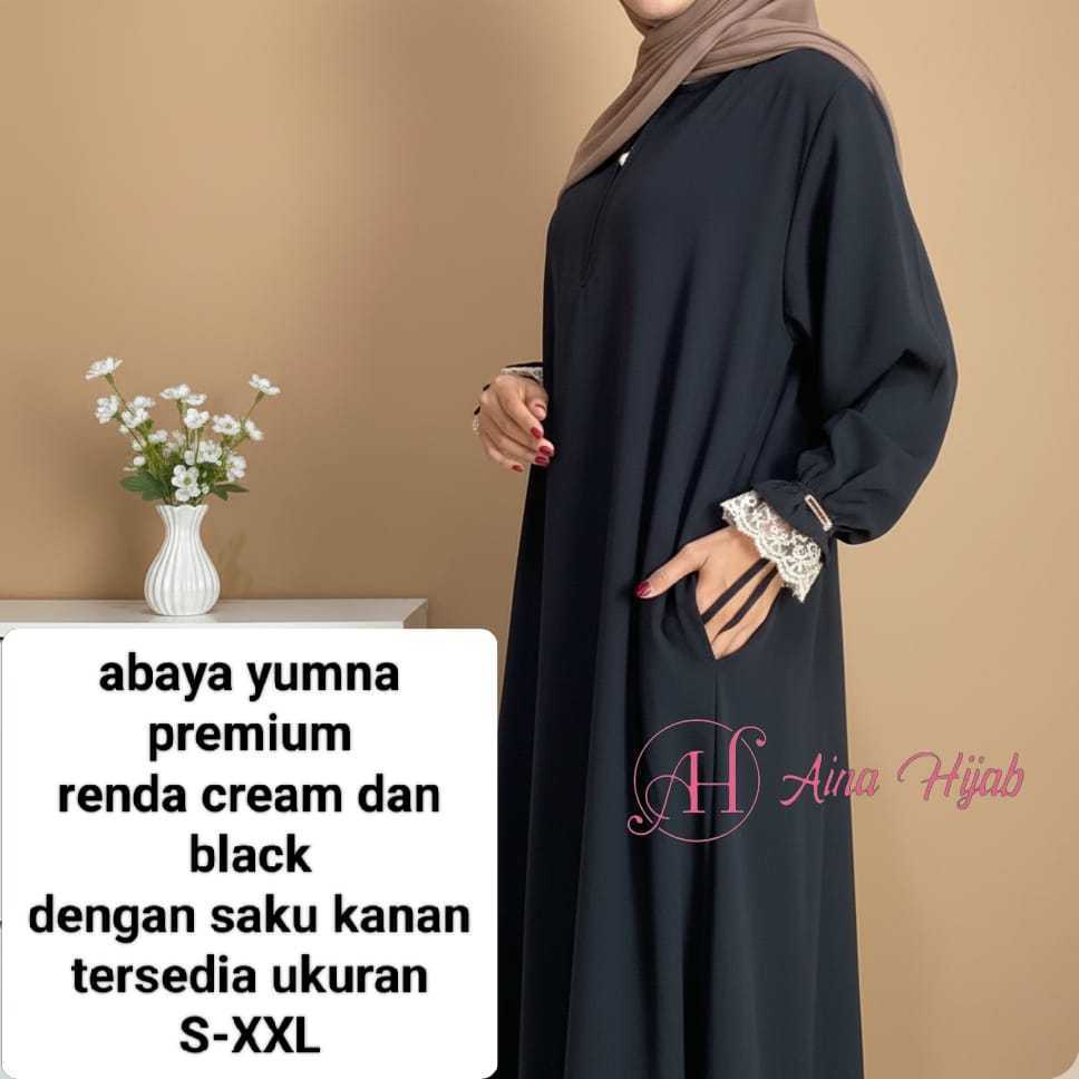 Abaya Yumna Terlaris Gamis Polos hitam Lengan Karet Renda Ada Tali Cincin Busui Simpel Mewah Elegan- pakaian wanita lainnya