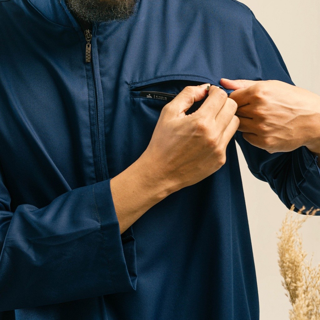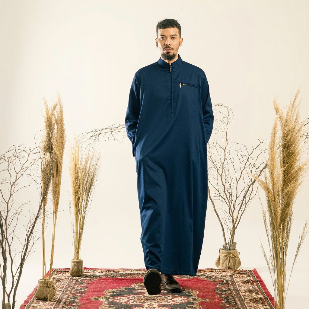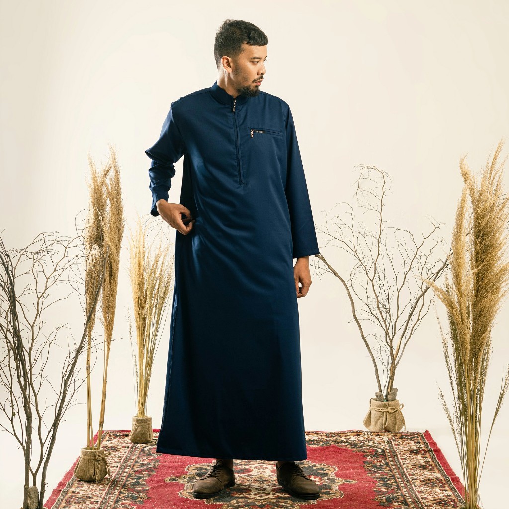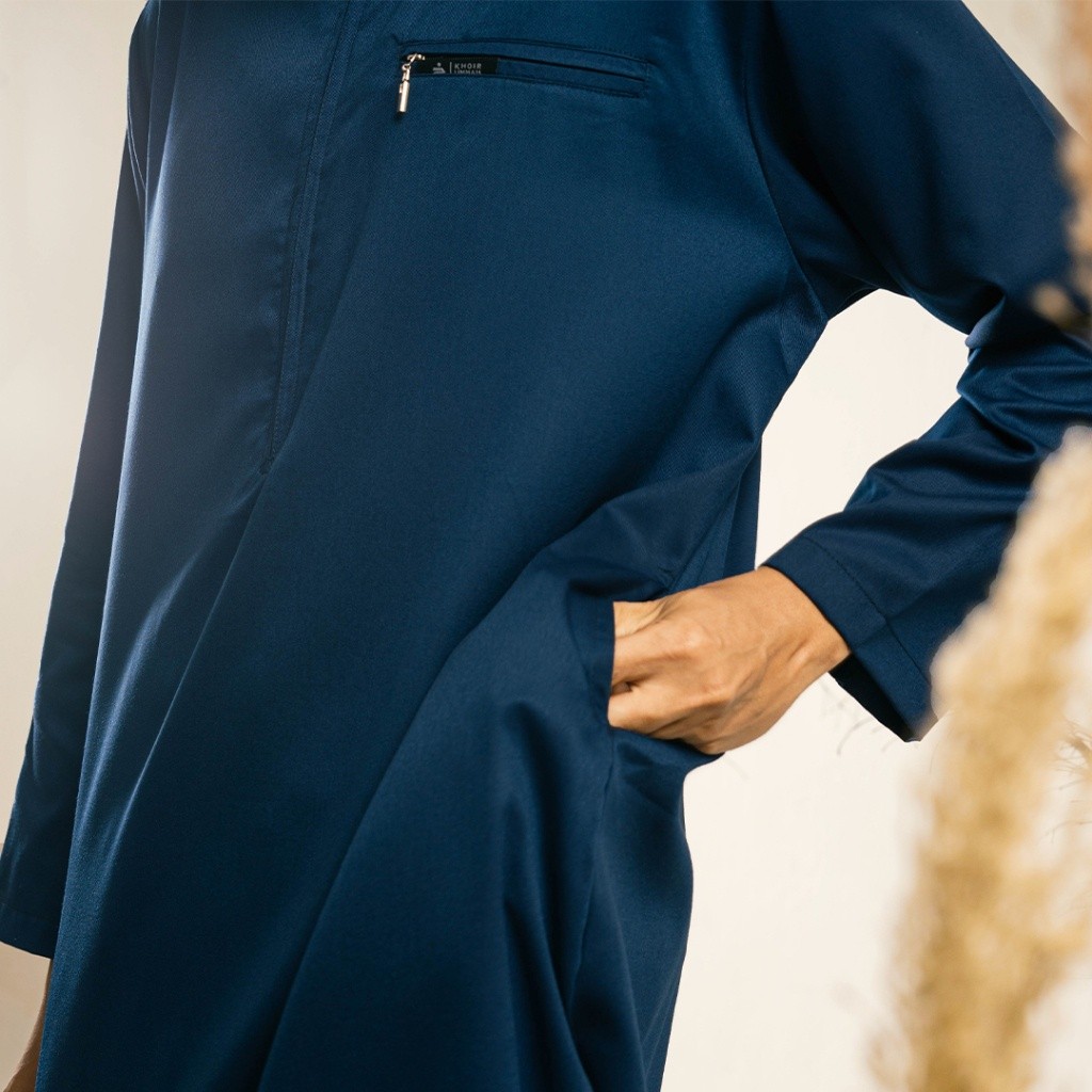 KHOIRUMMAH - Jubah Khalifah - Gamis Pria Dewasa Lengan Panjang Half Zipper - Navy/ Hijau sage lumut army ijo