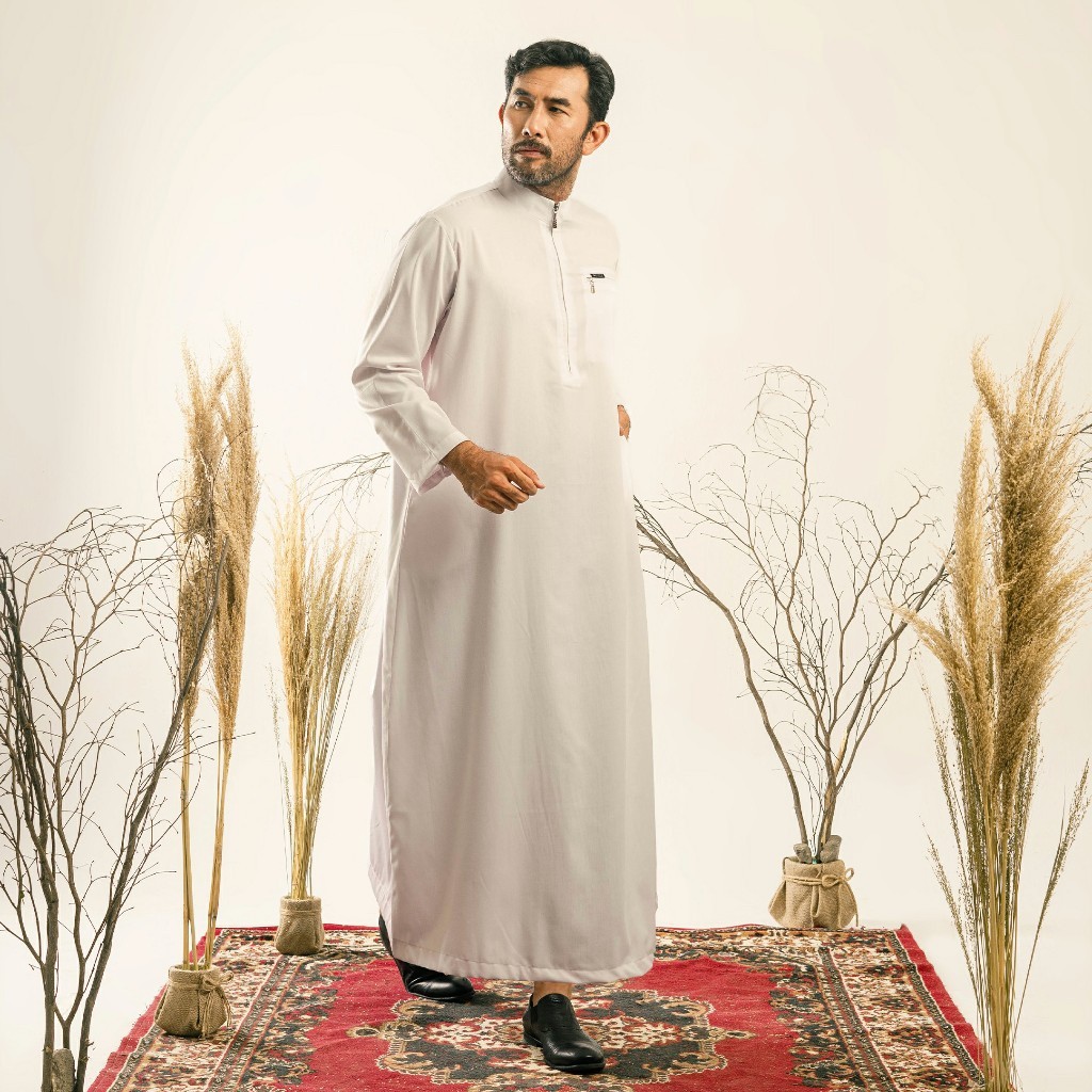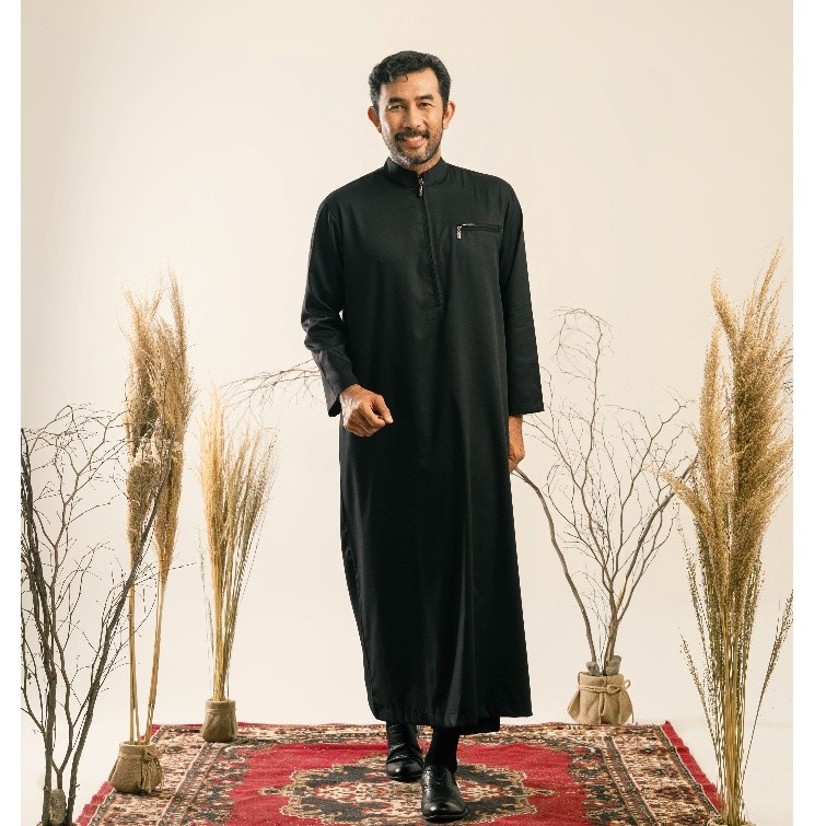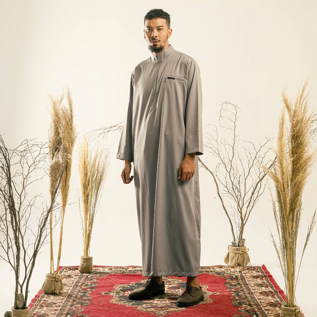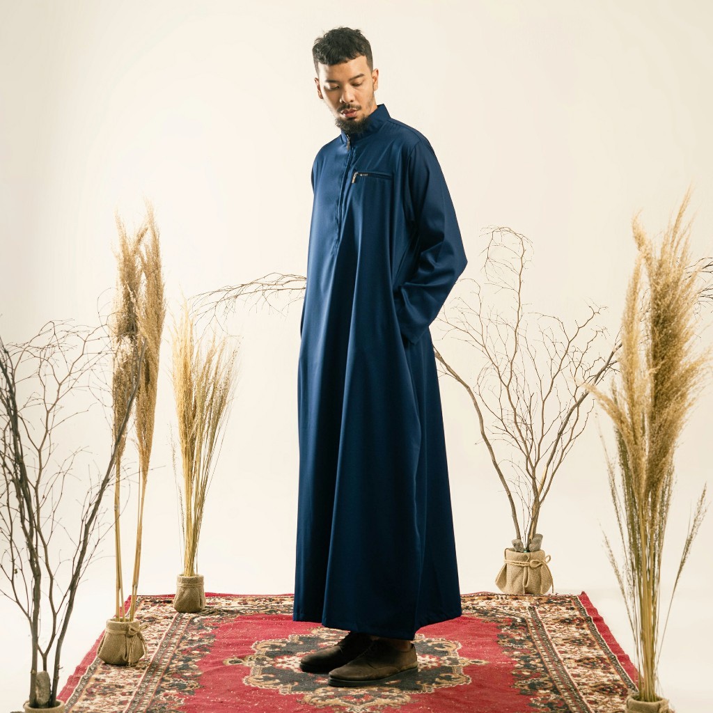 KHOIRUMMAH - Jubah Khalifah - Gamis Pria Dewasa Lengan Panjang Half Zipper - Navy/ Hijau sage lumut army ijo
