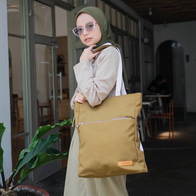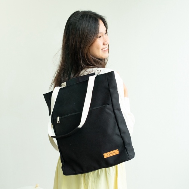 ANNONA Totebag Ransel Wanita Resleting Kanvas Totepack 2 in 1 Multifungsi Laptop 14 inch Tapirus