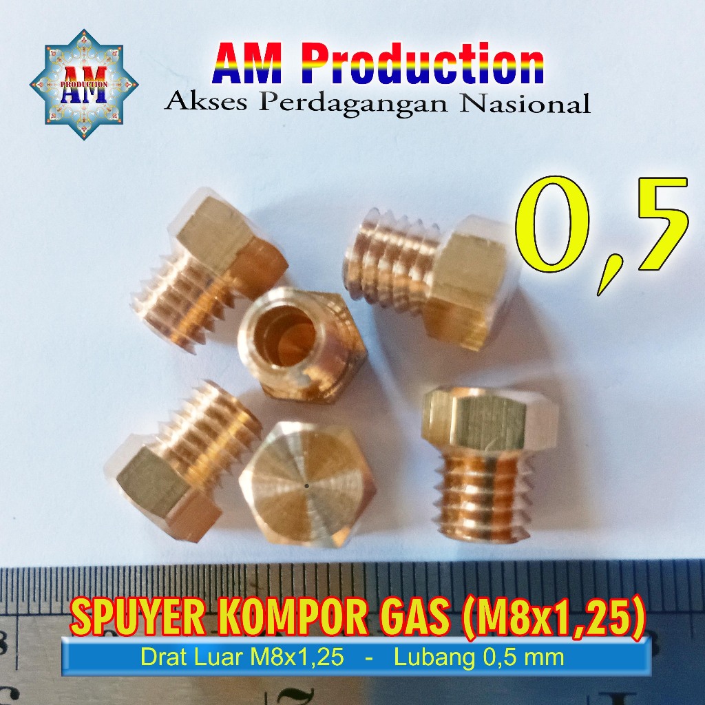 Spuyer Kompor Gas M8x1,25 Lubang 0,5 mm Perlengkapan Kompor Gas
