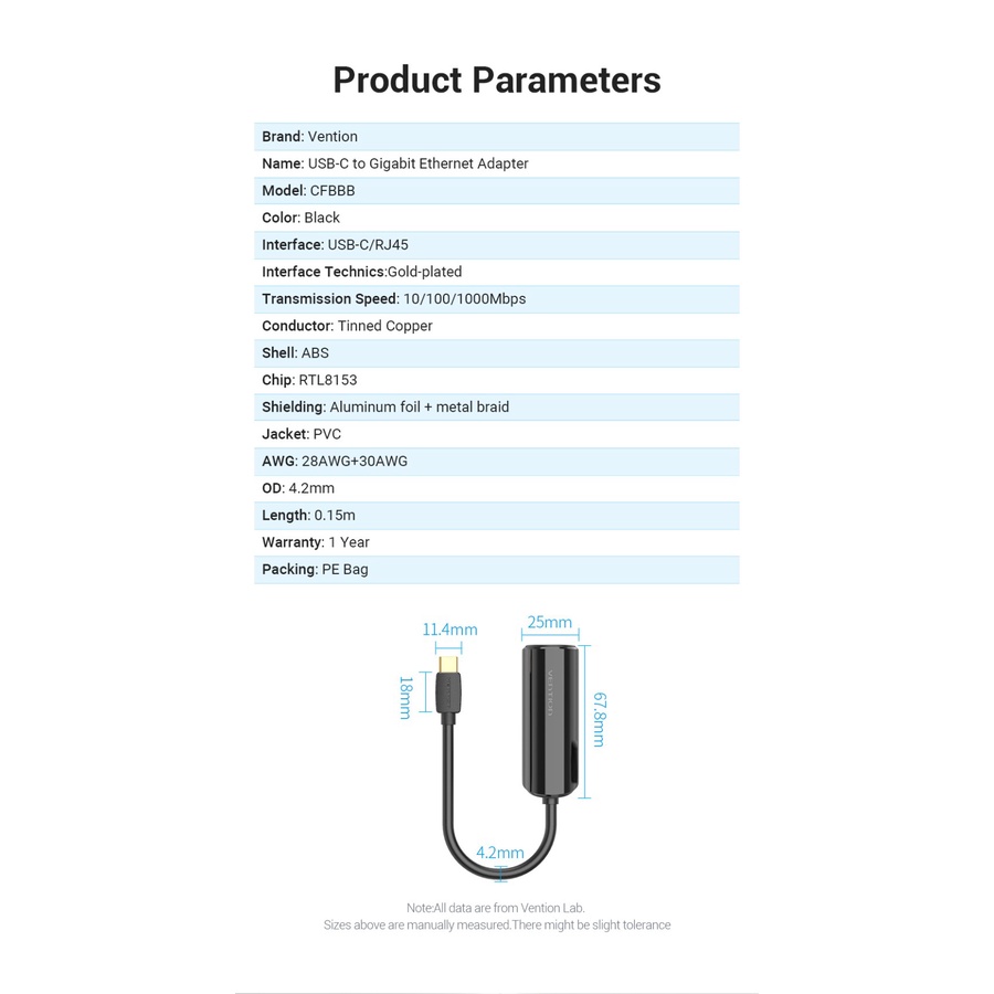 Vention Usb Type C to LAN RJ45 Gigabit Ethernet Network