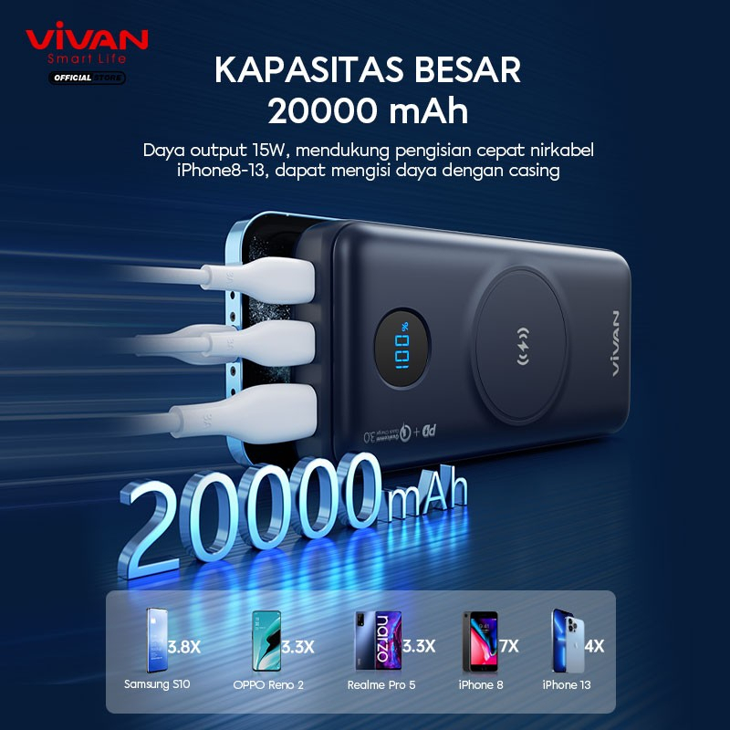 Powerbank VIVAN 20000 mAh VPB-W20 Wireless 3 Output Fast Charging 15W