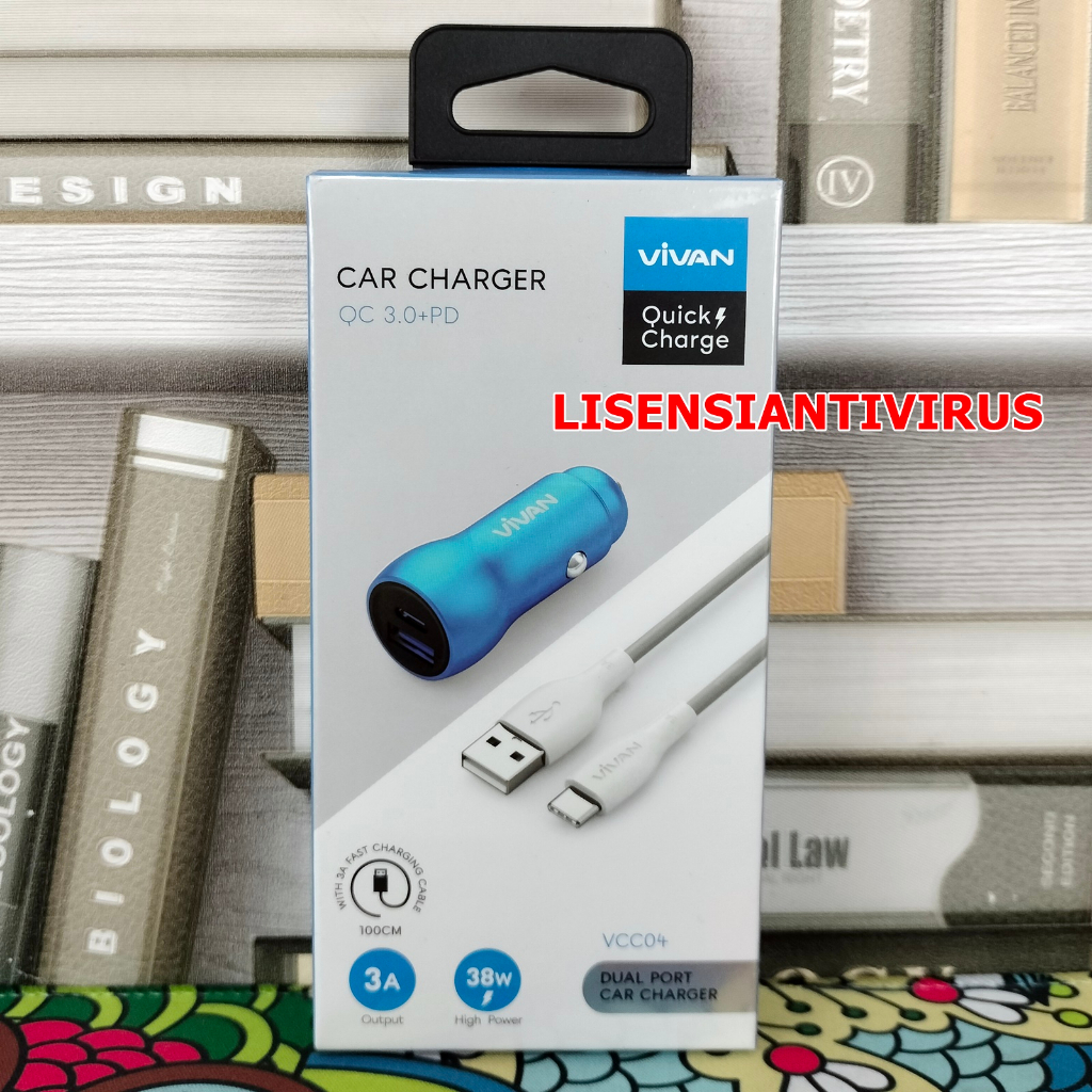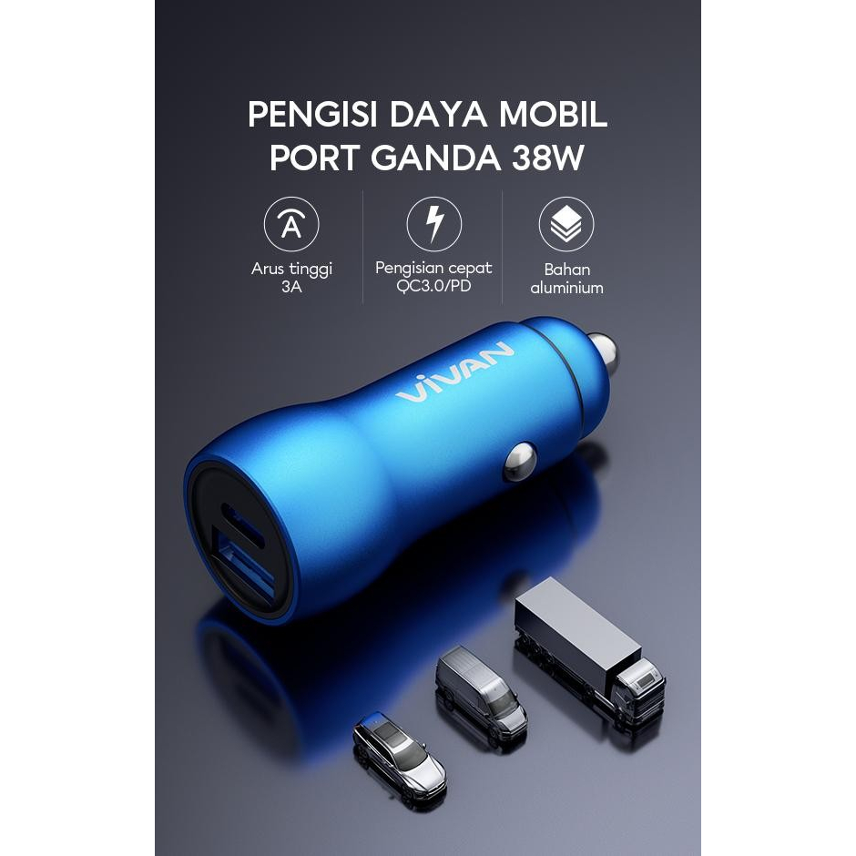 Vivan VCC04 Dual Port USB-C USB-A Fast Charging Car Charger Mobil 38W