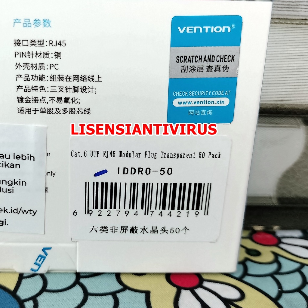 Kepala Konektor RJ45 Vention 1 Kotak isi 50 Pcs Cat5 Cat6 Gold Plated