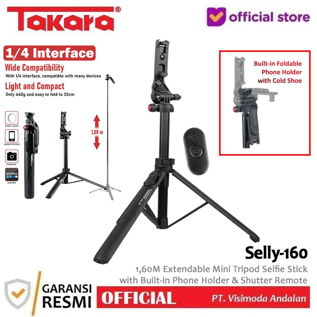 Tripod Takara Selly-160 Selly 160 Mini Tripod Selfie Stick with Shutter Remote 158cm Light Compact