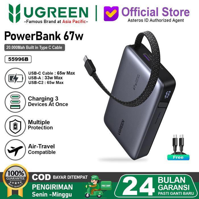 Powerbank UGREEN Nexode 100W 12000mAH Led Smart Display Airflight Friendly Fast Charging 35526B
