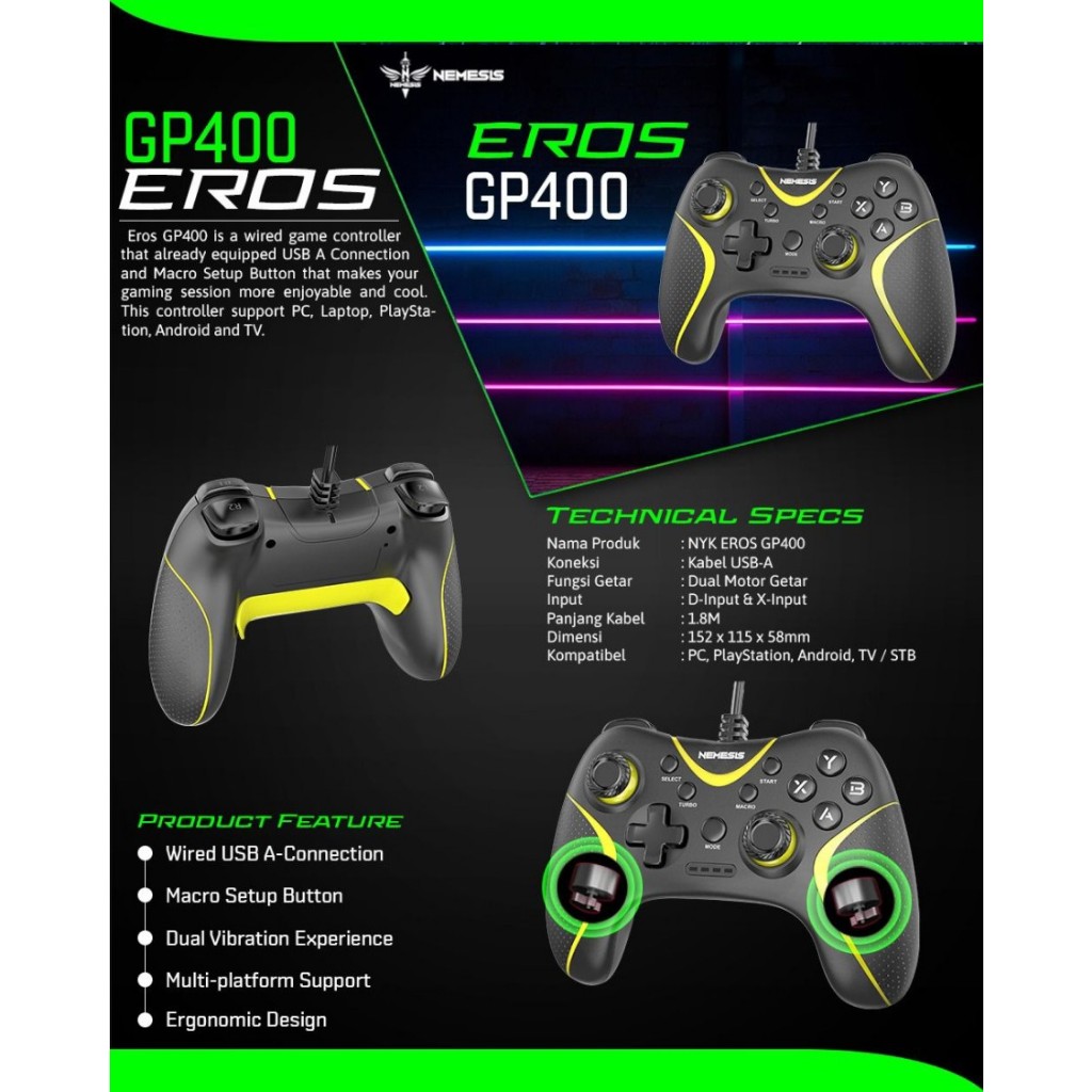 Gamepad NYK Eros NYK Nemesis Gamepad Wired Turbo with Macro EROS GP 400 NYK NG-ACU GP400