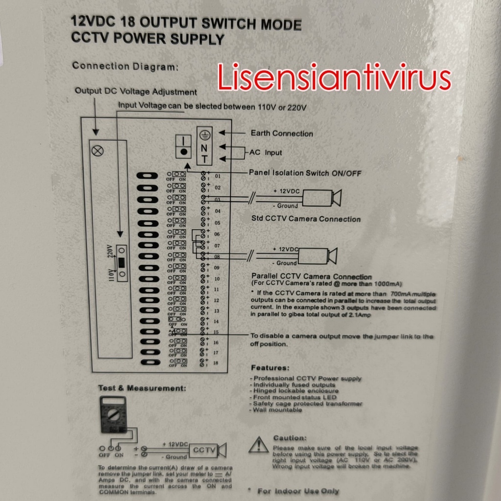 Power Supply PSU CCTV Box Panel DC 12V 20A CCTV 18 Channel Output