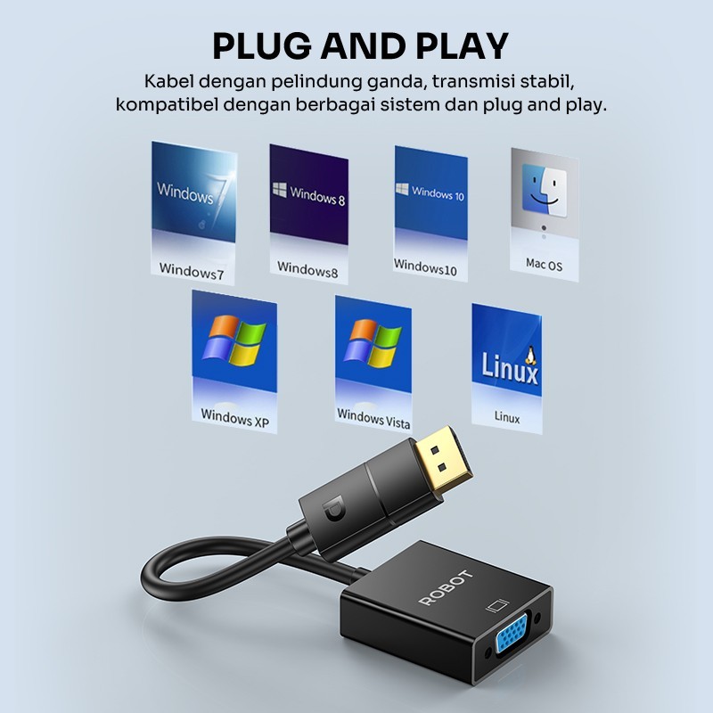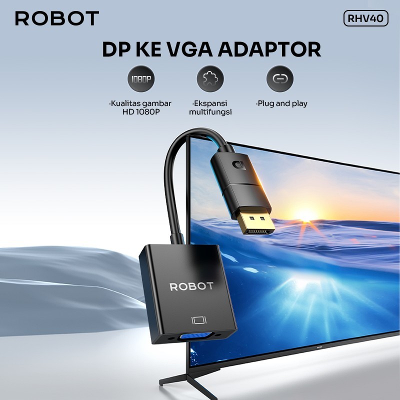 ROBOT RHV40 DP TO VGA Adapter Laptop/PC 1080P Original Garansi 1 Tahun