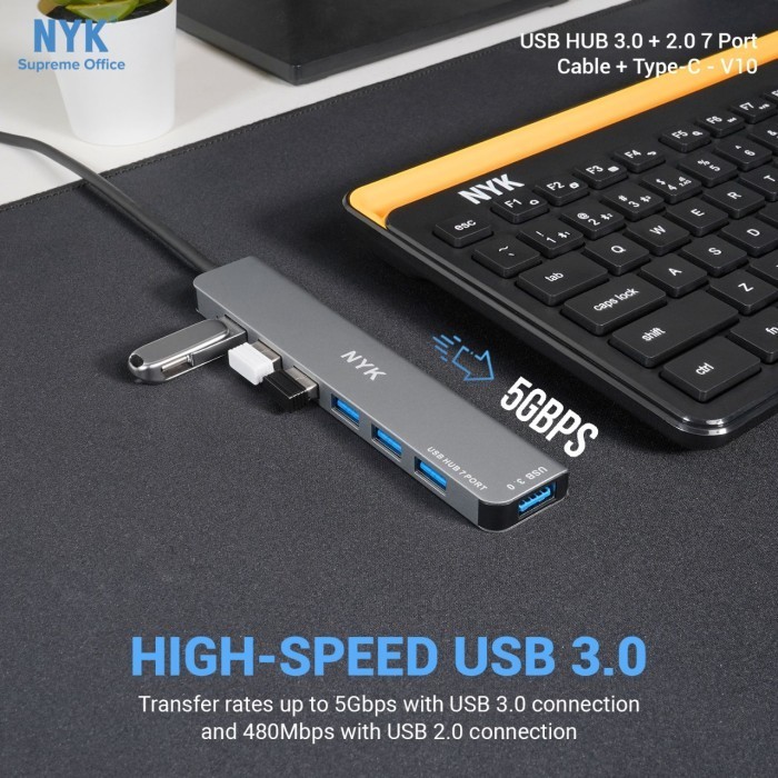 USB HUB 3.0 NYK V10 7 Port Cable 1M + OTG Type-C Support Mac UH3 NV10