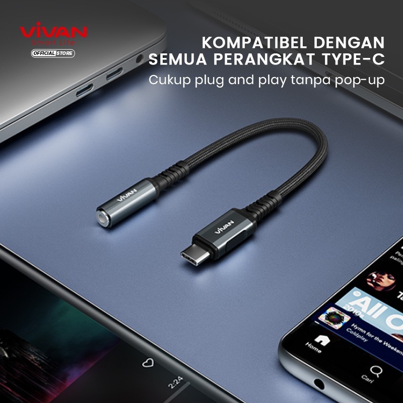 VIVAN Kabel Converter Type C to Jack AUX 3.5mm VAC01 Audio All in One