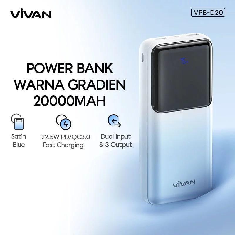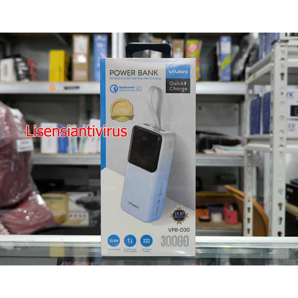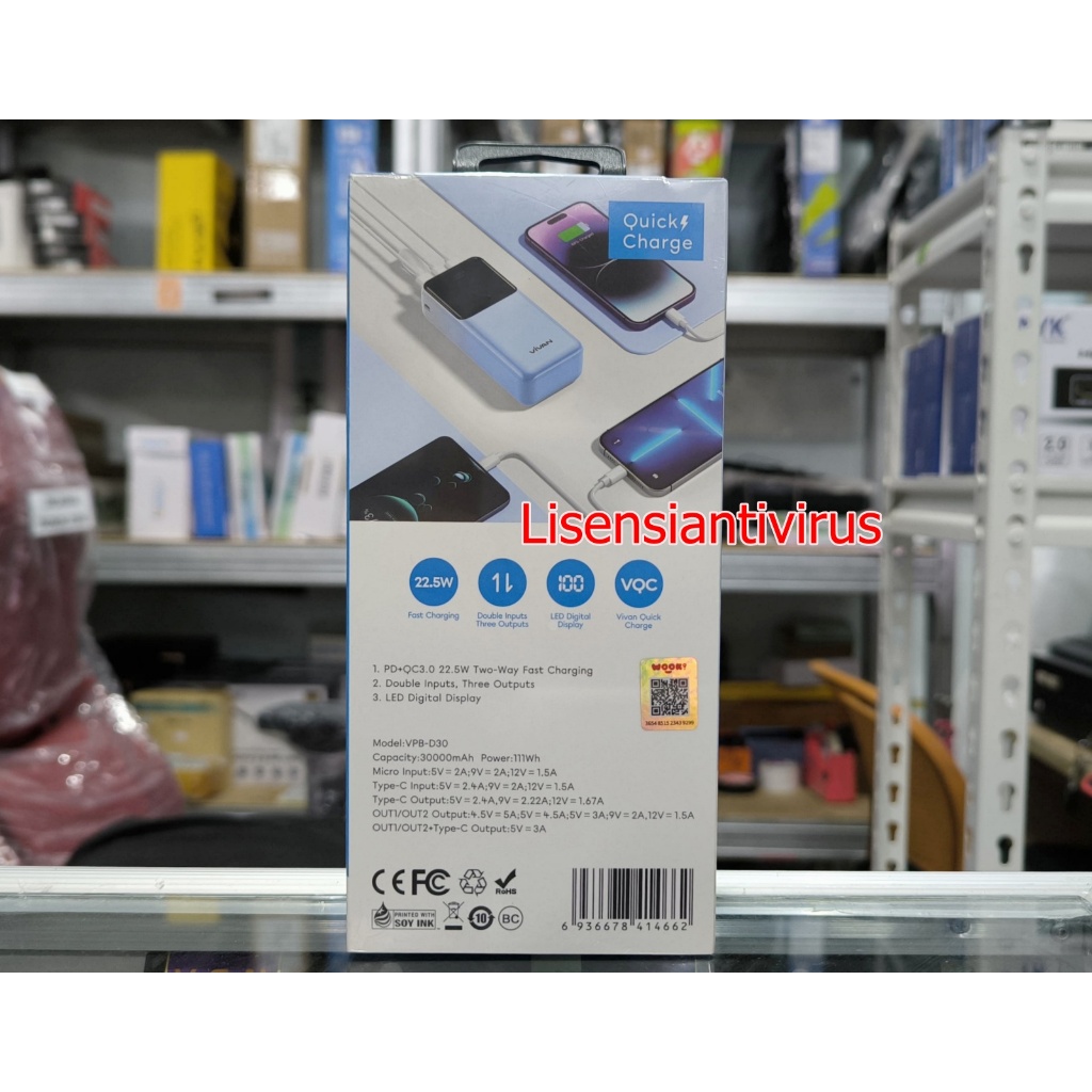VIVAN Powerbank VPB-D30 30000mAh Fast Charging QC 3.0 PD 20W 2 Input & 3 Output Led Indikator